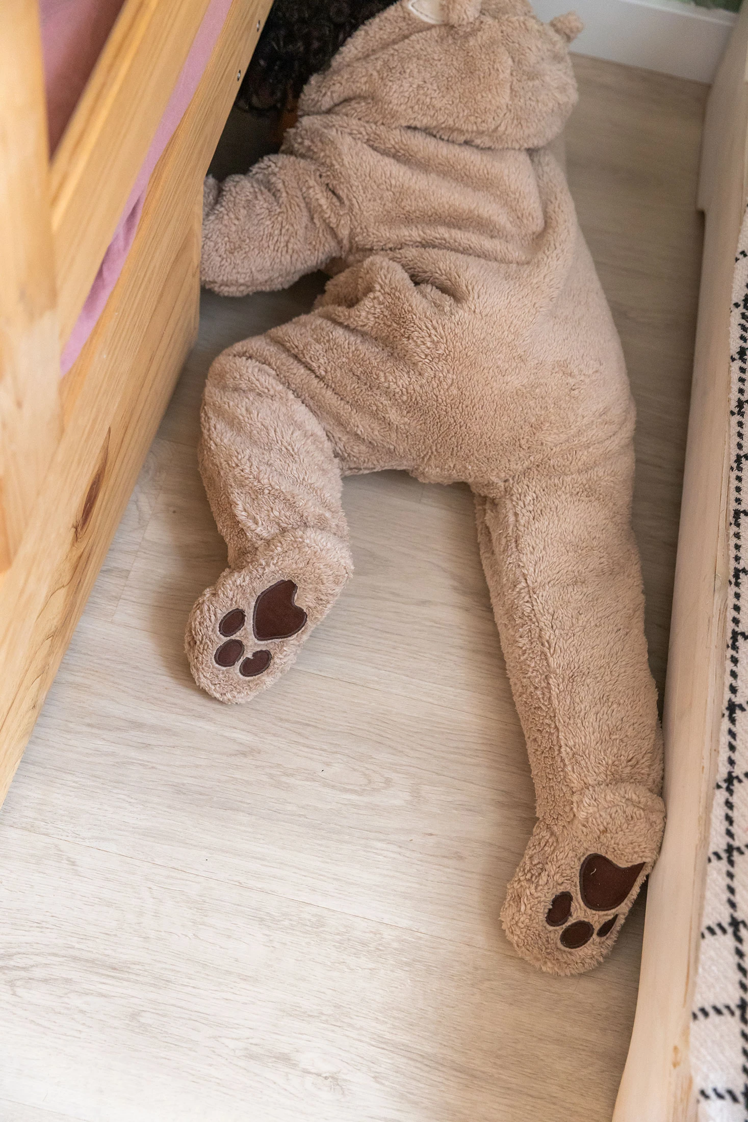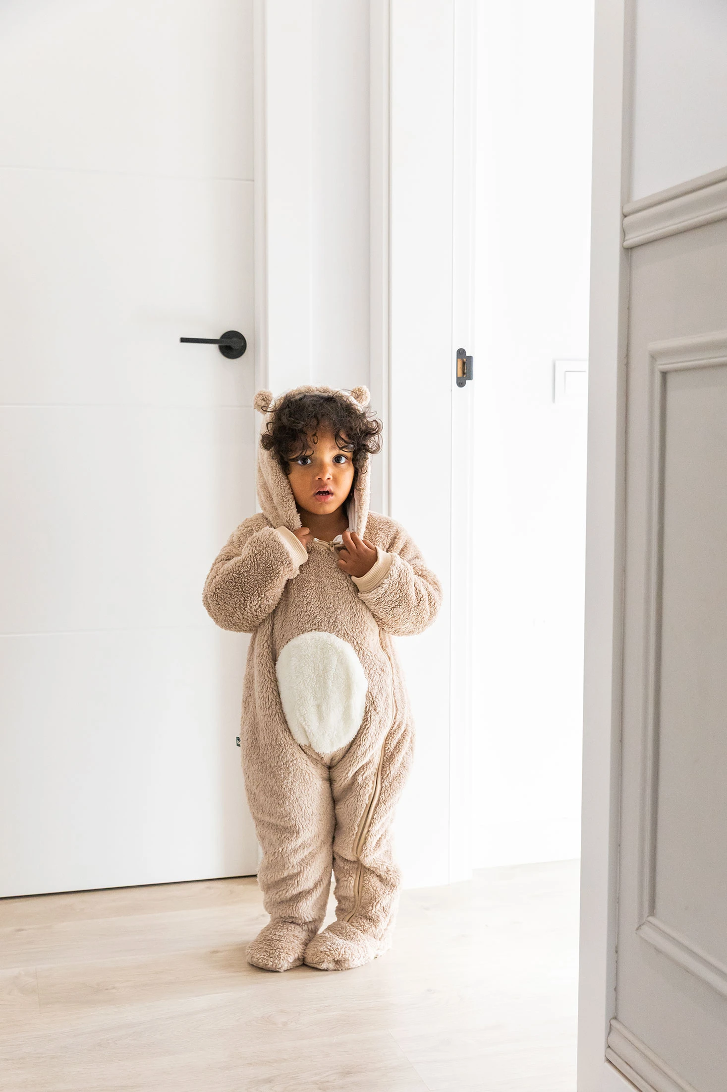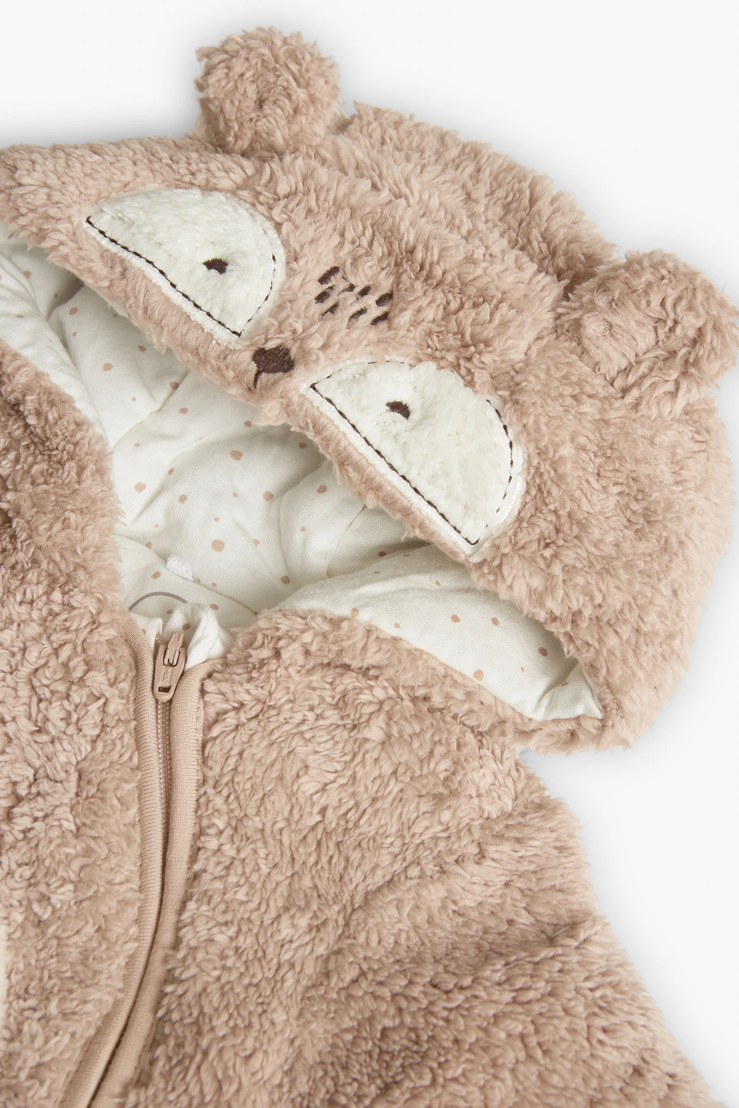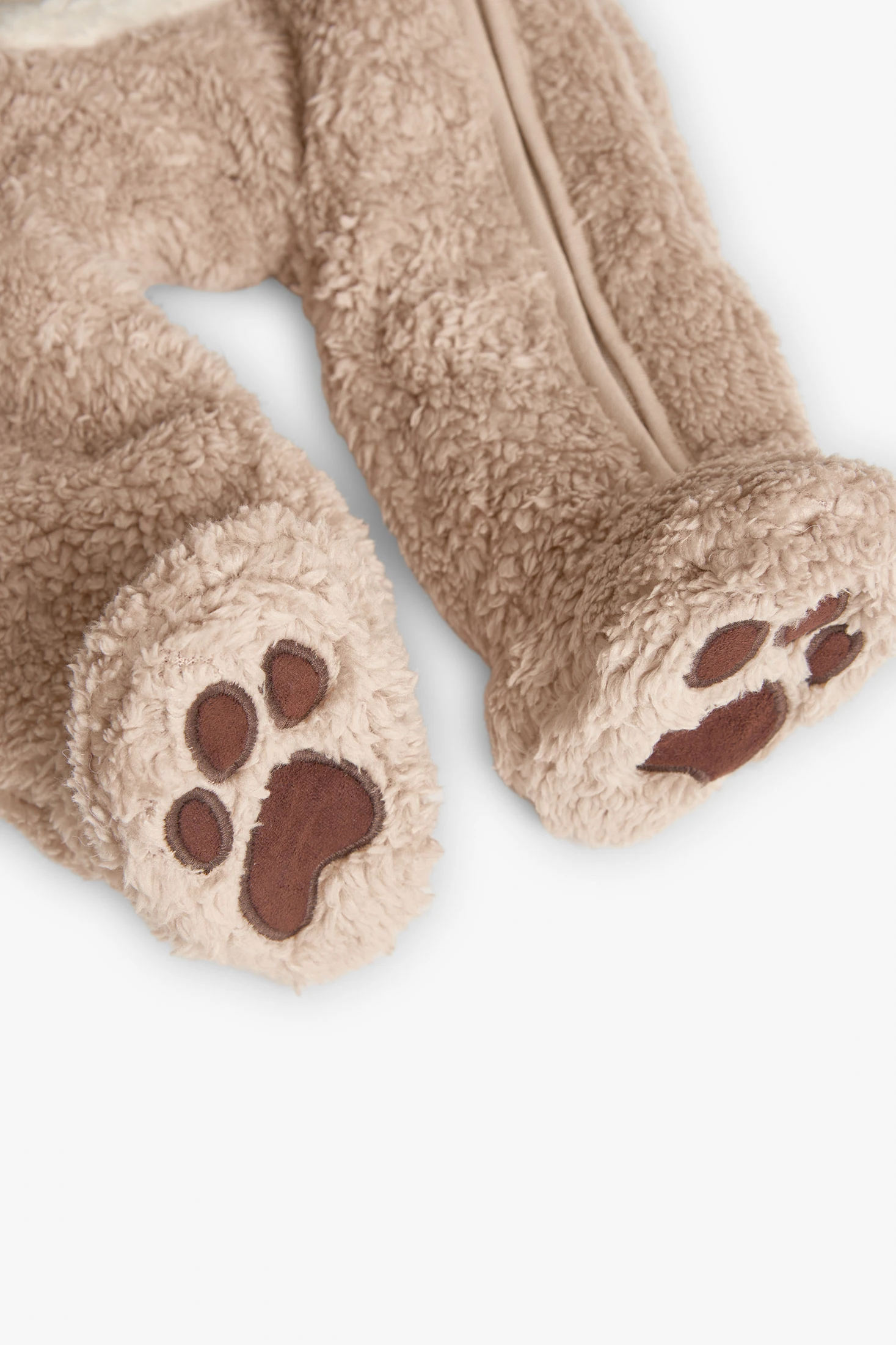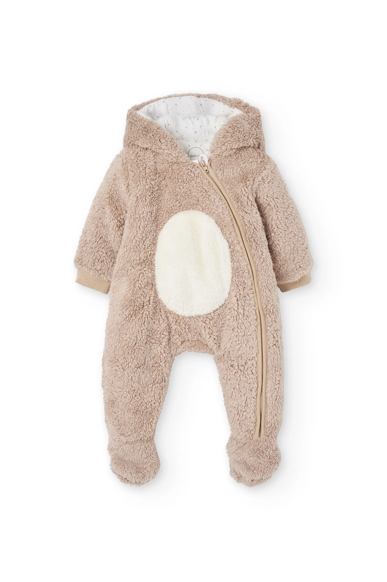 Soft fur fabric baby sleepsuit in beige, a delicate and cosy garment, ideal for the sensitive skin of little ones. Crafted from soft knit fabric, it offers comfort and breathability, making it perfect for the winter seasons. Its neutral beige design allows for easy matching. Available in sizes ranging from 1 month to 2 years, it comfortably accommodates your child's growth. It is an elegant and functional choice for any occasion.