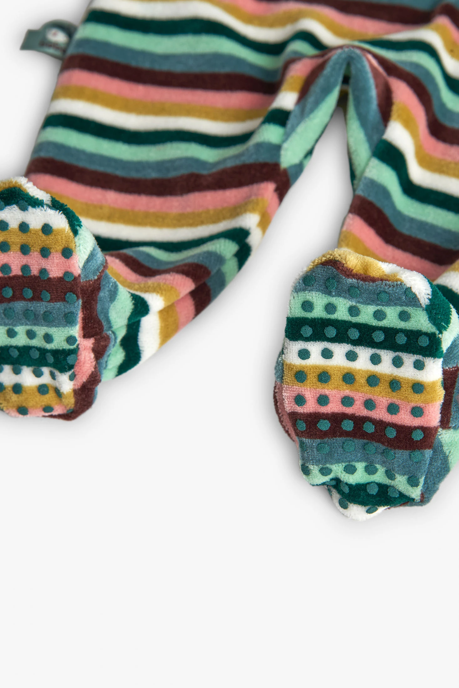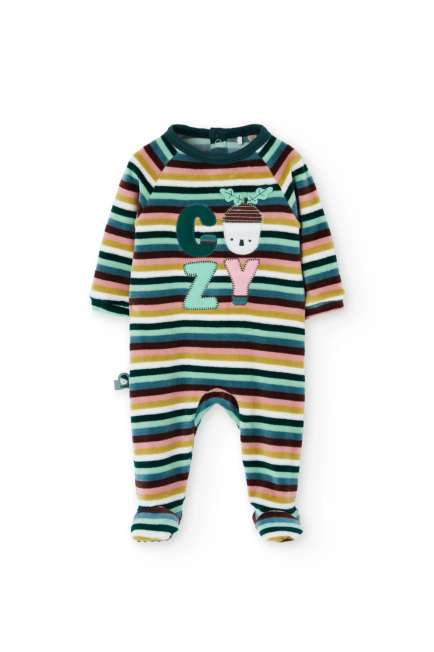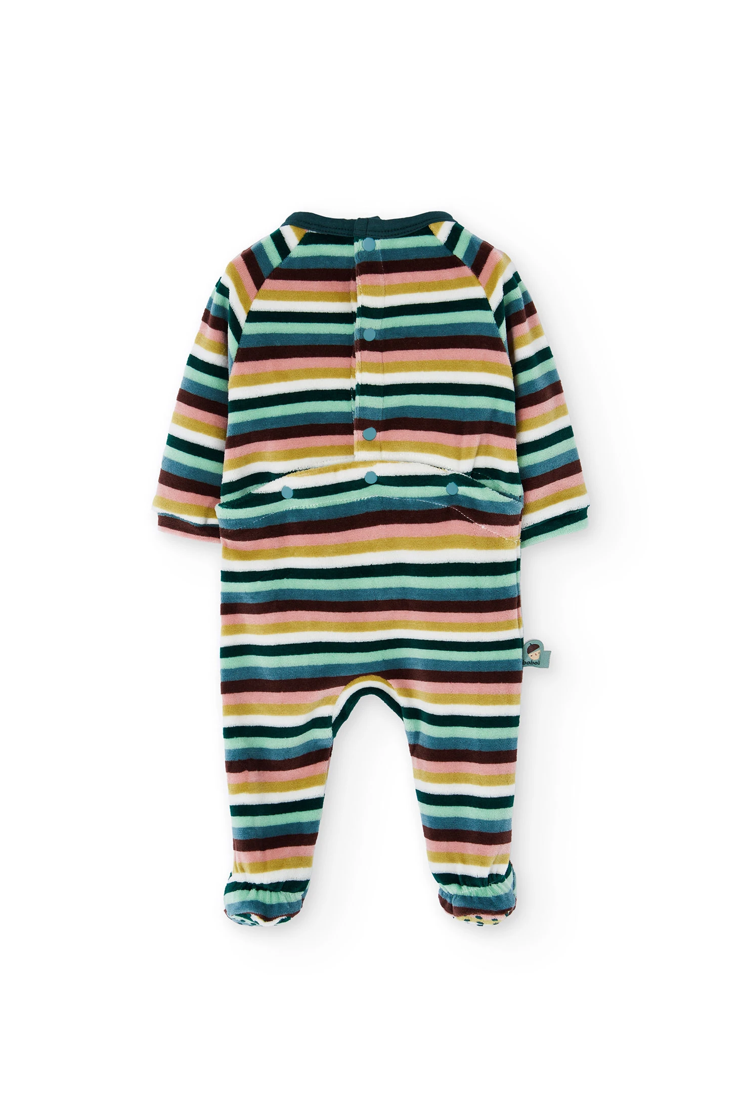 Striped velvet babygrow for babies, perfect for keeping your little one warm and comfortable during the cold months. Made from a soft velvet fabric, it is available in sizes ranging from 0 months to 2 years, ensuring a comfortable fit as your baby grows. Its multicolour design adds a fun and vibrant style, while the long sleeves and covered feet offer maximum protection against the cold. Ideal for wearing alone or paired with a hat and blanket, this babygrow is a must-have in any baby's wardrobe.