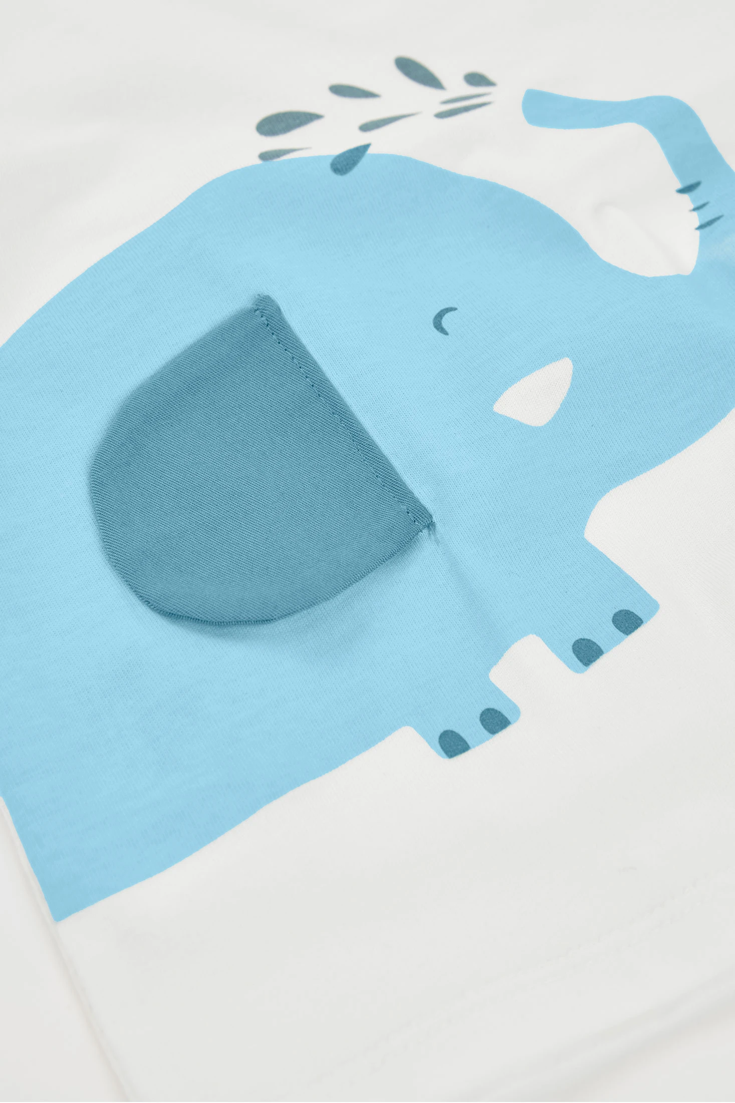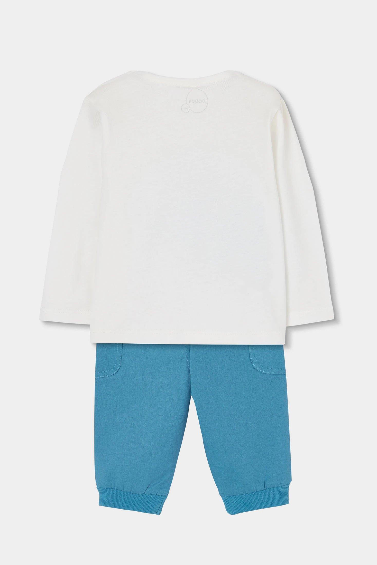 Set of T-shirt and trousers for baby in white cotton, perfect for the little ones. The T-shirt features a fun blue elephant print, adding a playful touch. Ideal for ages 1 month to 24 months, the set is soft and comfortable, perfect for everyday wear. Blue trousers offer flexibility and style, perfect to pair with other basic garments. Its functional and attractive design makes it a charming choice for dressing your baby throughout the year.