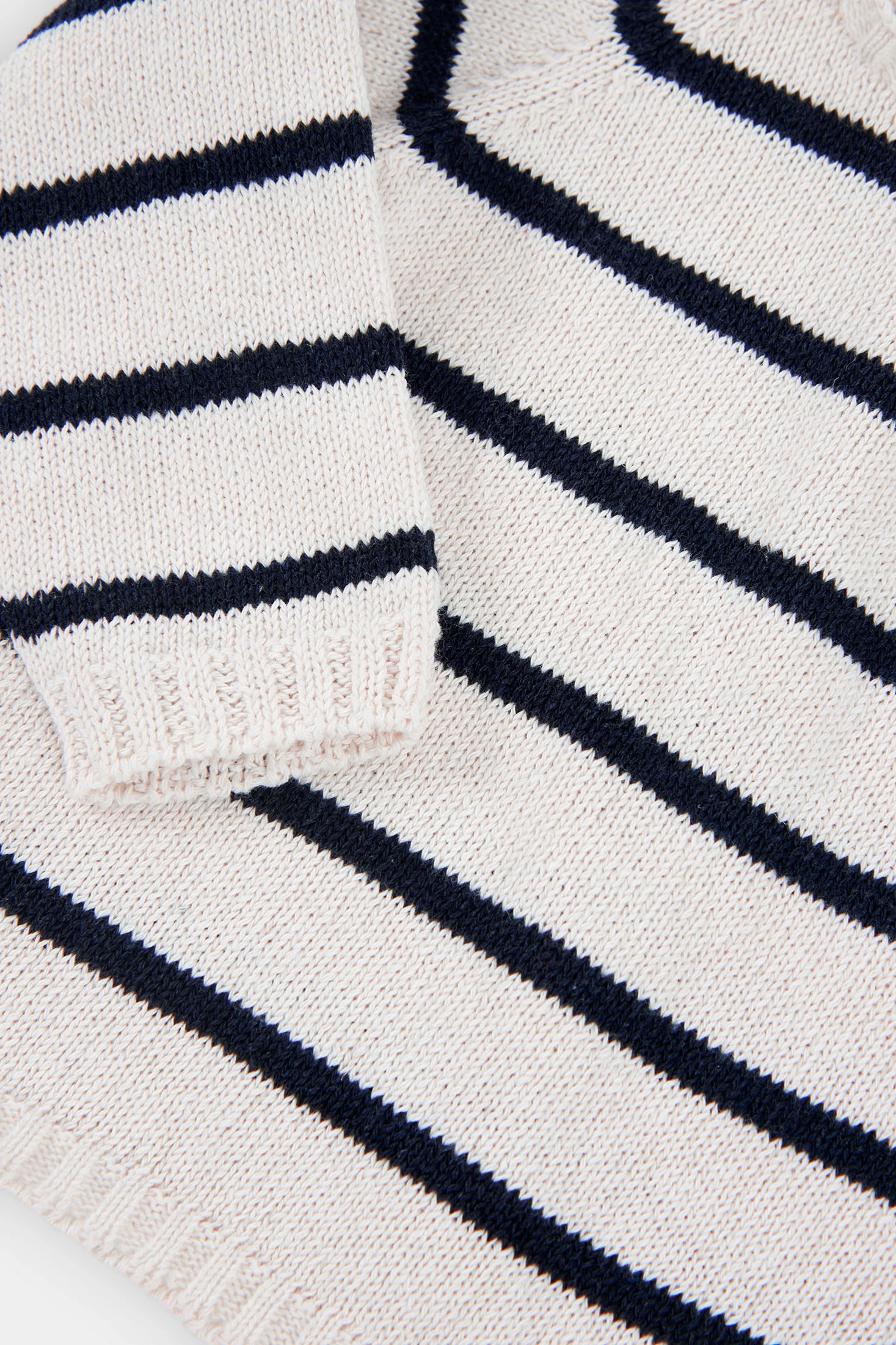 Knitted baby sweater with a classic striped design. Part of the REBORN by Boboli capsule, a collection made with 100% post-consumer recycled yarn. Made from soft cotton fabric that offers comfort and lightness, ideal for everyday wear. Features a round neckline and practical shoulder buttons for easy changing. Its versatile style allows easy pairing with trousers, dungarees or rompers, creating sweet and elegant outfits.