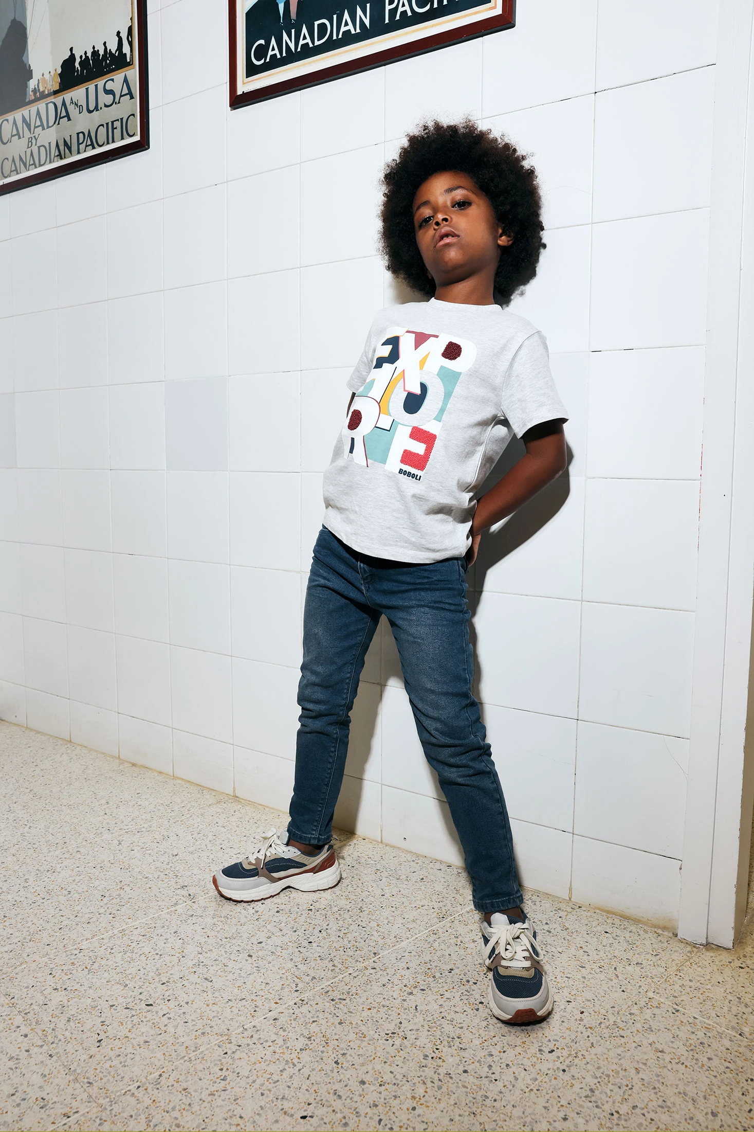 This is a plain, stretchy denim trouser for baby boys. It's perfect for in-between seasons. The fabric is flat, providing comfort and ease of movement. The trousers come in a range of sizes, from 6 months to 8 years. The fastening is a simple hook, making it easy for dressing and undressing. The colour is a versatile blue, making it a great addition to any little boy's wardrobe. This is a practical and stylish choice for your child's everyday wear.