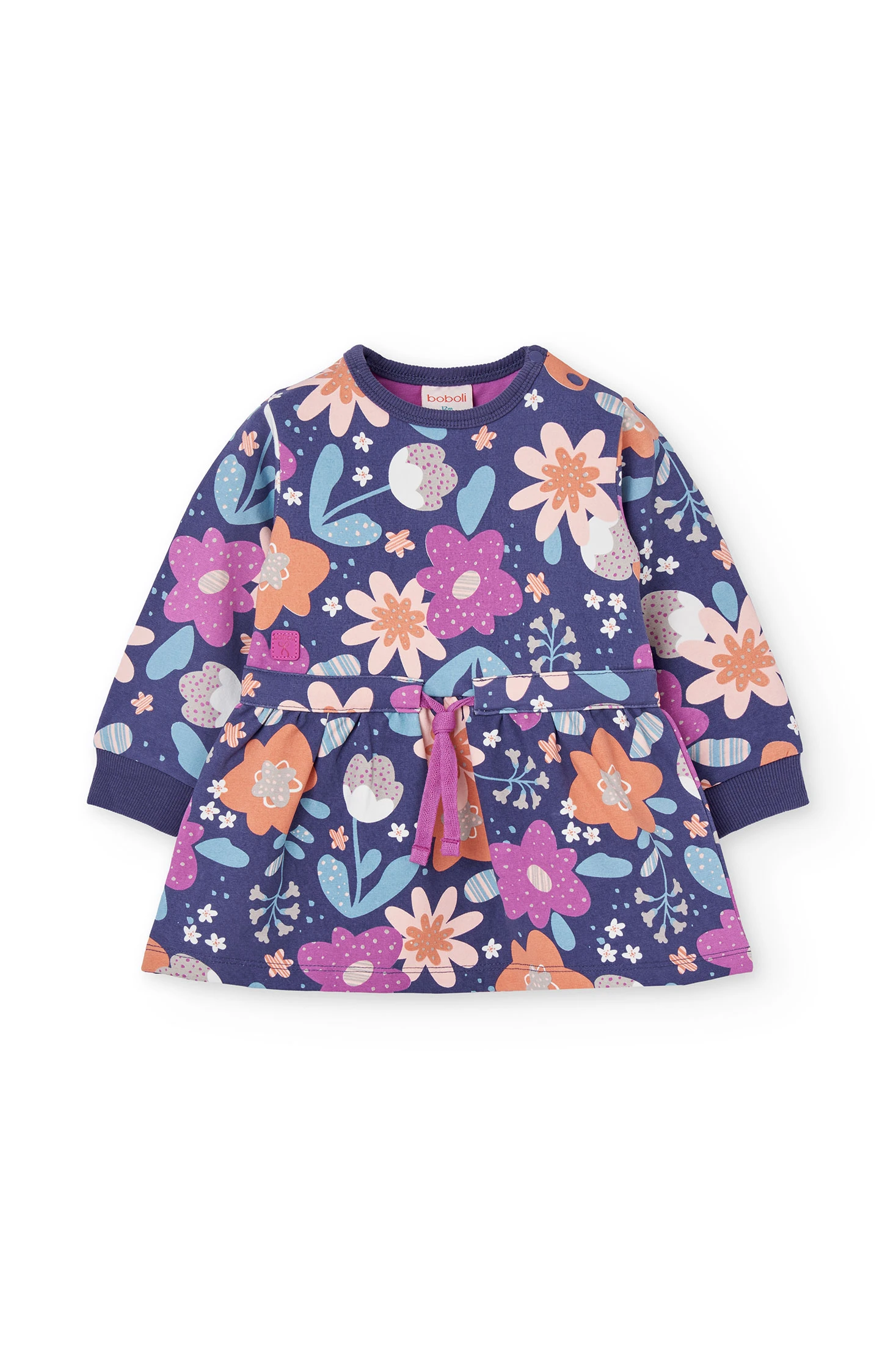 Knitted dress for girls with a floral print in various colours, an essential item for children's wardrobes. Made from soft and comfortable material, it is ideal for keeping your little one warm during the autumn and winter seasons. Its round neck design and long sleeves add a classic and elegant touch, perfect for any occasion. Available in sizes from 12 months to 10 years, it easily pairs with tights and little boots for an adorable and complete look.