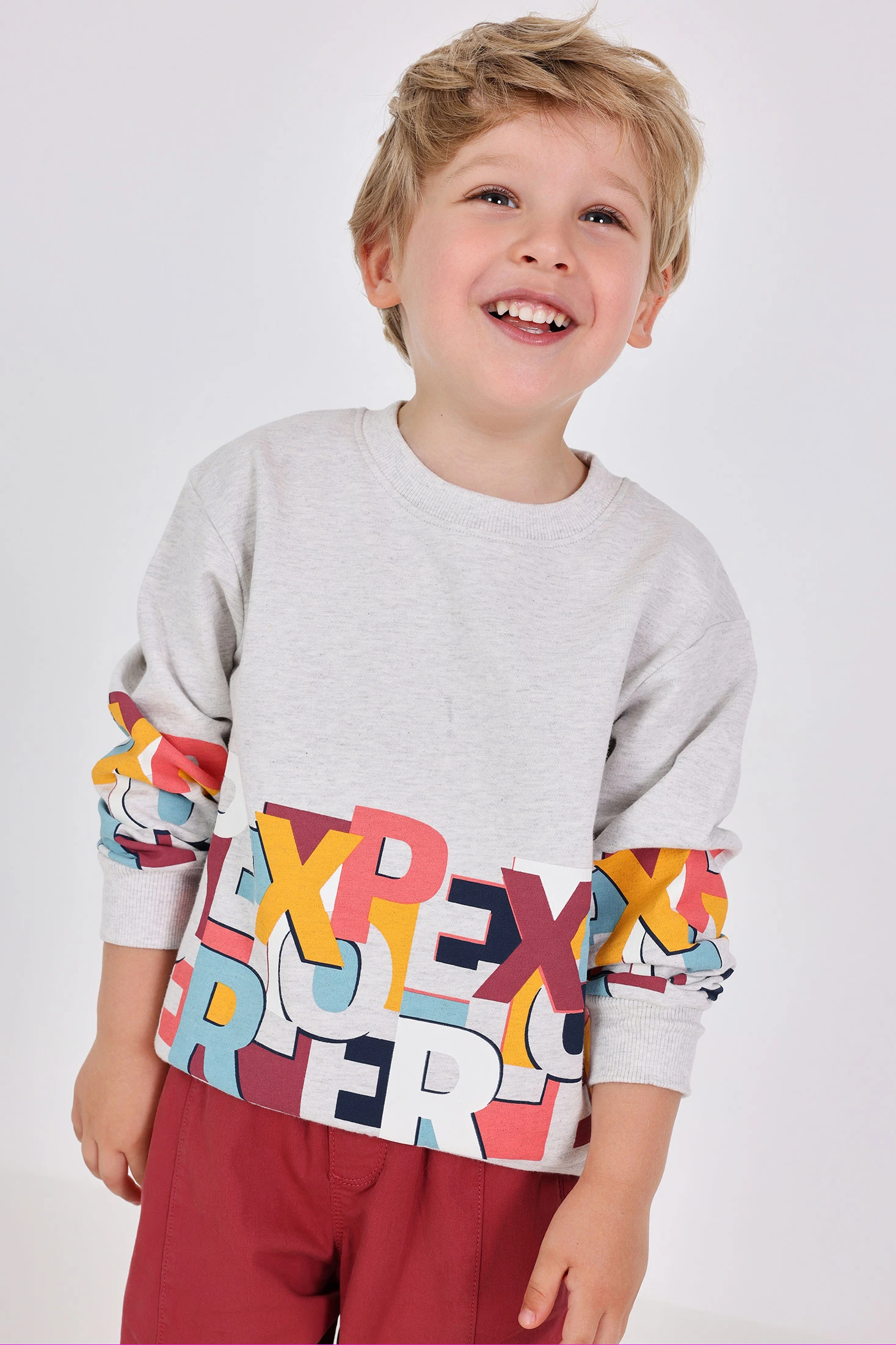 Cream knit sweatshirt for boys, ideal for keeping little ones comfortable during the cold seasons. Crafted from soft cotton, it features a cream-coloured design that easily pairs with any outfit. Its round neck and long sleeves provide warmth and comfort, making it perfect for autumn and winter. Available in sizes from 12 months to 10 years, this garment pairs perfectly with jeans or casual trousers, ensuring a modern and functional style for everyday wear.