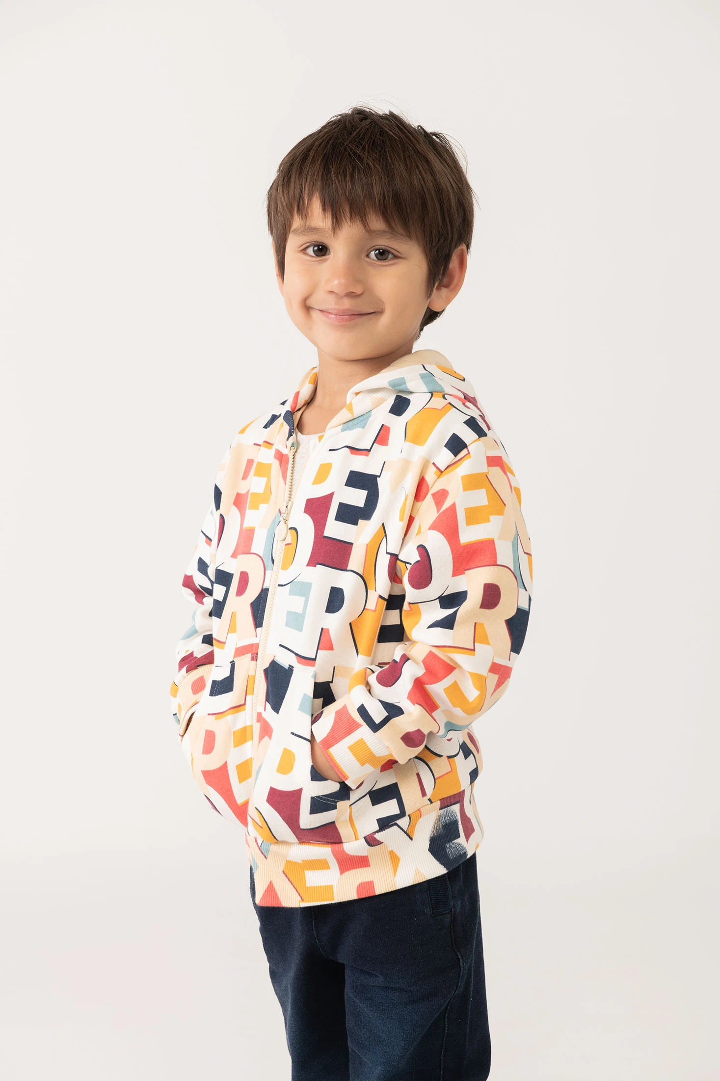 Baby's fleece jacket with colourful letters features a modern and cheerful design, perfect for keeping your little one warm in cool weather. Made from soft fleece, it ensures comfort and warmth during the autumn and winter months. Available in sizes from 12 months to 10 years, it ideally complements your child's daily look. Practical zip closure allows for easy and quick adjustment, harmoniously pairing with trousers in solid tones. Its colourful and fun design makes this jacket an essential piece for any child's wardrobe.