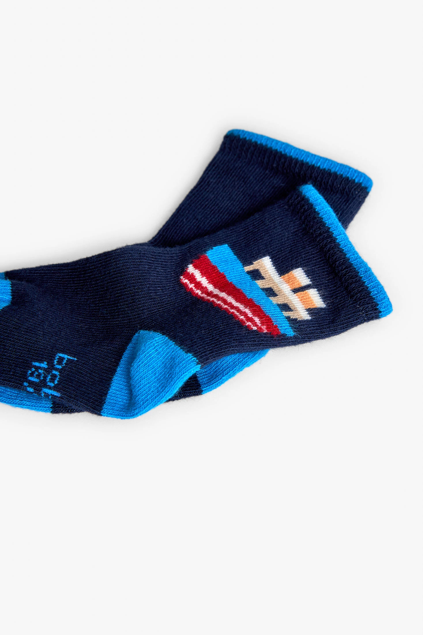 Pack of knitted socks in various designs and colours, perfect for keeping your baby's feet warm and comfortable. Made from a soft material that ensures a secure and cosy fit for children from 12 months to 10 years. Ideal for the winter season, these socks add a nautical and fun touch to any outfit. The blue and green colours offer versatility to match various garments, making these socks a practical and essential choice for your little one's daily wardrobe.
