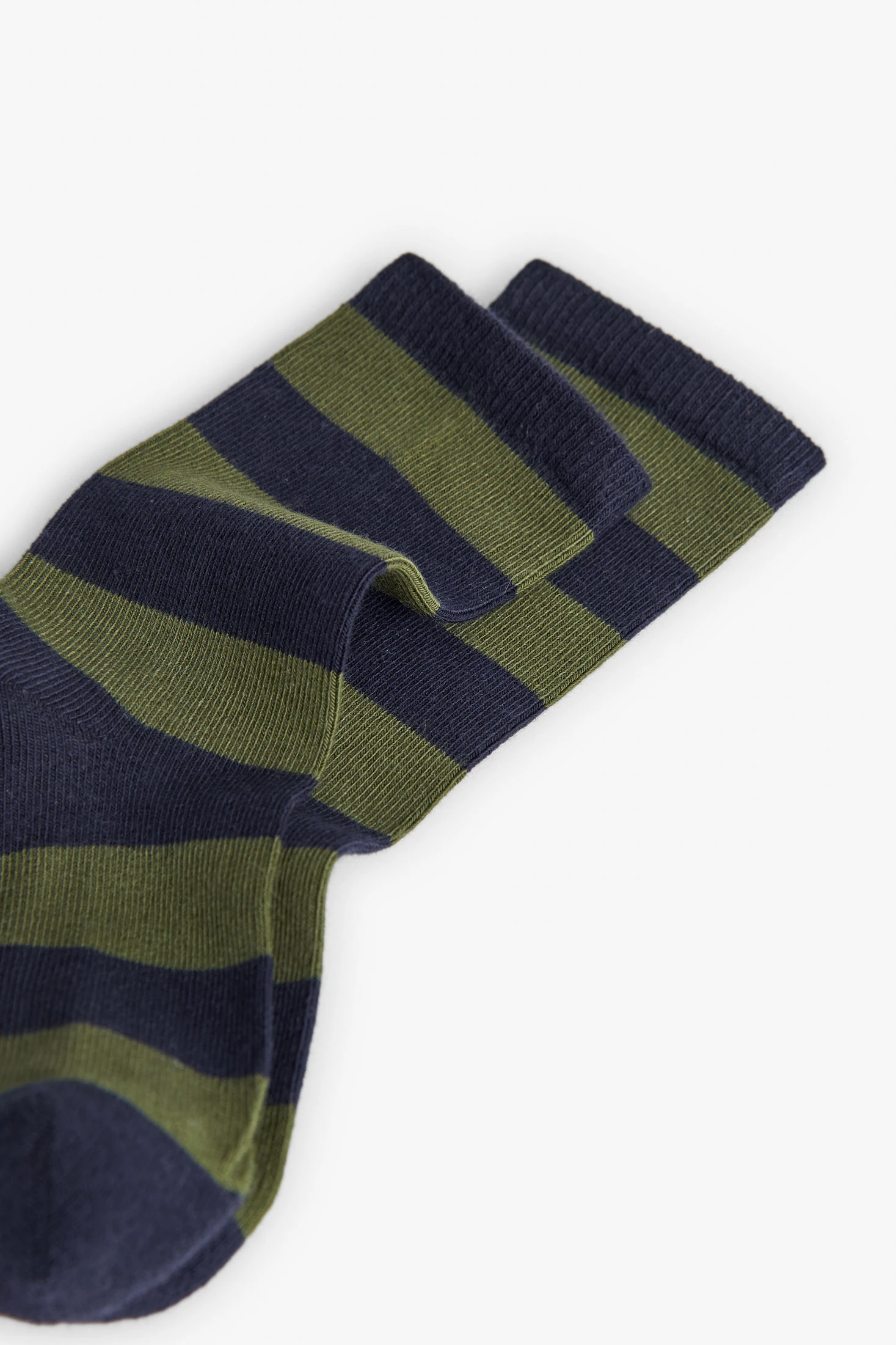 Navy blue knitted socks for children, adorned with elegant stripes, crafted from a soft and stretchy fabric that provides warmth and comfort. Perfect for keeping a child's feet warm during the colder seasons, these socks are ideal for everyday wear. Available in sizes from 19/21 to 36/37, they accommodate the child's growth perfectly. Their classic design and the navy and olive green colours allow them to be easily paired with any outfit, adding a touch of style.