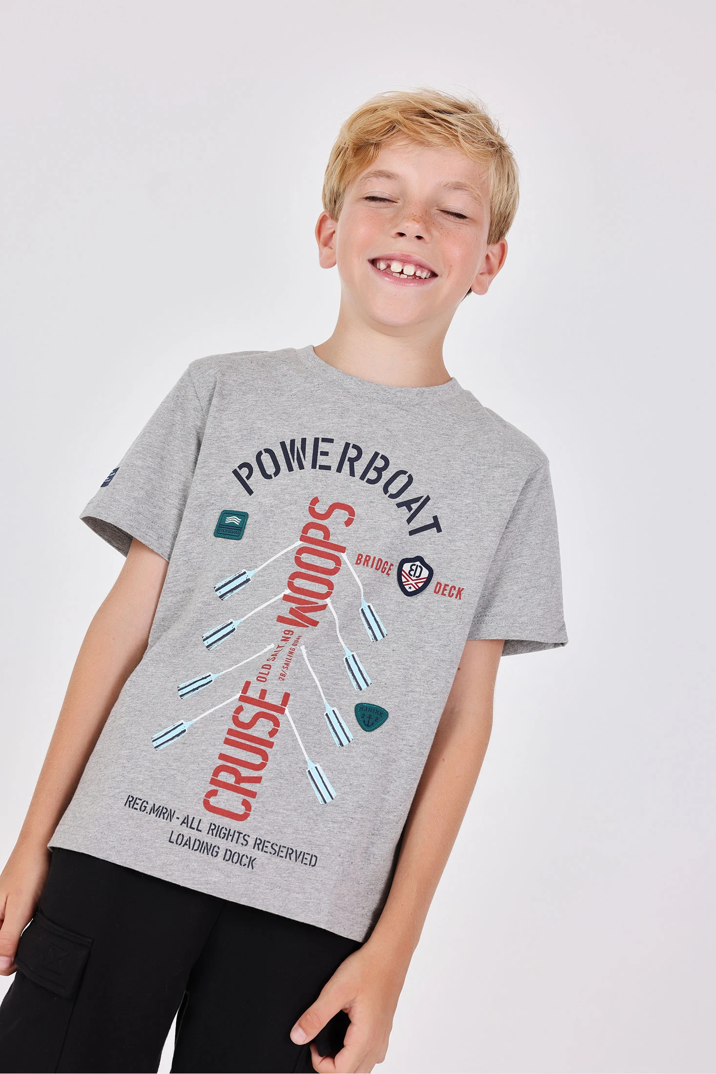 Grey cotton T-shirt for boy, an essential garment in any child's wardrobe, combines comfort with a classic and versatile style. Made from a soft knit fabric, it ensures a comfortable feel against the skin and allows freedom of movement. Its neutral beige tone is ideal for pairing with a variety of colours and styles, making it suitable for all seasons. It features a round neck design that fits well in both casual situations and more formal events. Available in sizes ranging from 2 to 14 years, it can be easily paired with jeans or trousers for a relaxed yet stylish look.