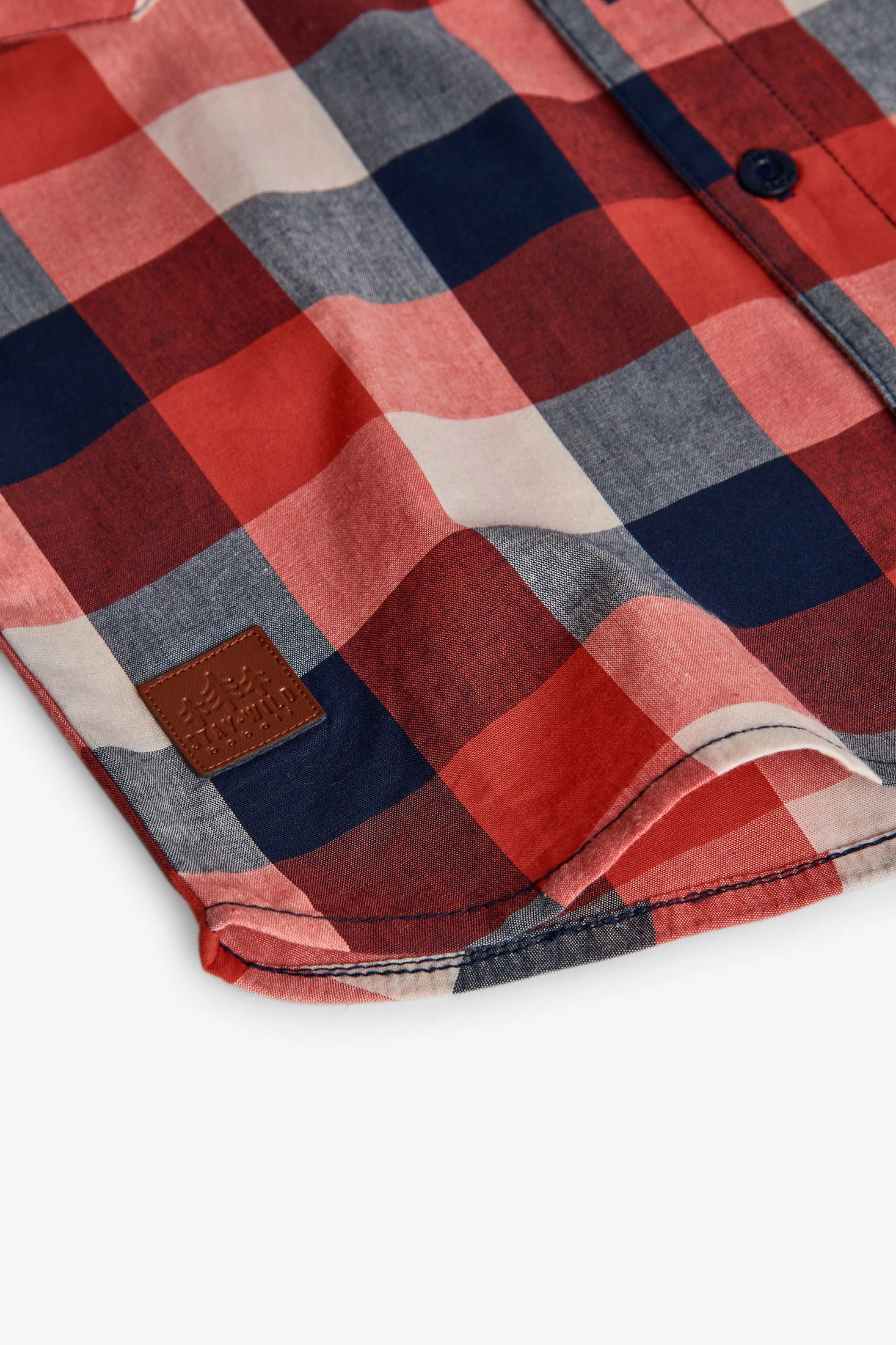 Boy's shirt with a classic checked design in shades of red, navy blue, and white, ideal for the autumn and winter seasons. Made from soft cotton, it offers comfort and warmth on chilly days. It features a traditional button-down collar and two chest pockets, adding a practical and elegant touch. Available in sizes from 2 to 14 years, it pairs easily with denim trousers for a casual look or dress trousers for more formal occasions.