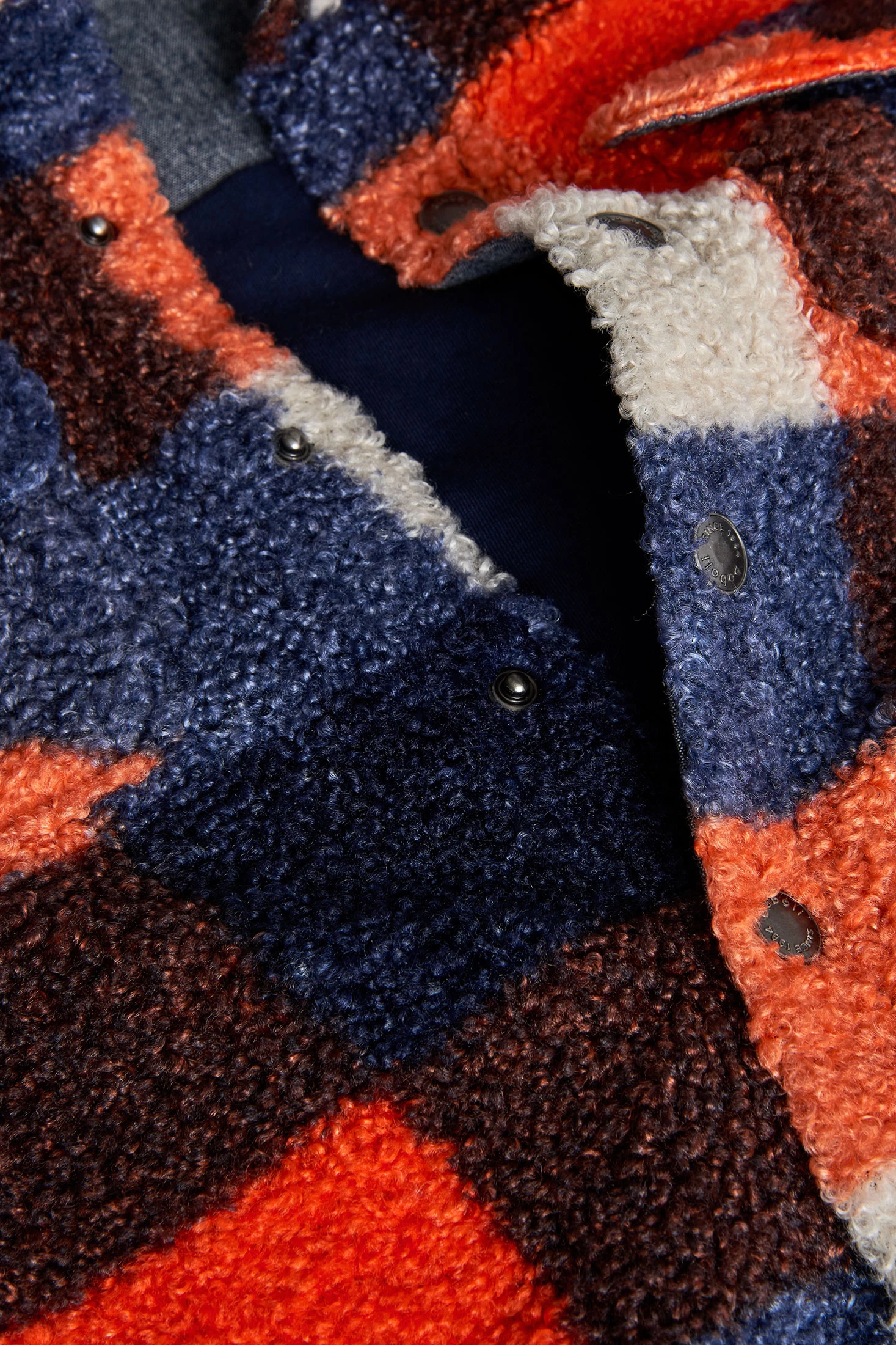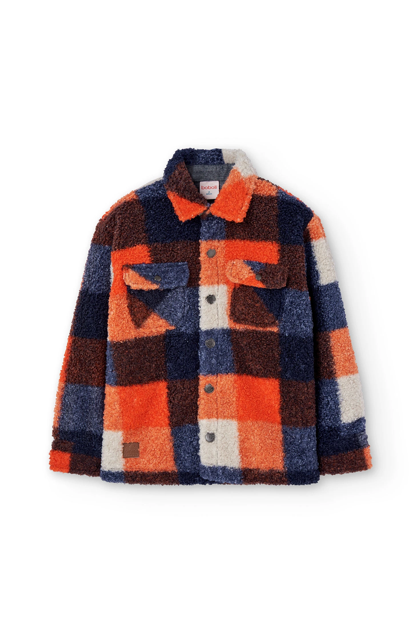 Sheepskin jacket perfect for the autumn and winter season, providing warmth and unique style. The checkered print in shades of blue, orange, and white offers a modern and attractive design. Equipped with a classic collar and front snap button closure, it is ideal for various occasions. The long sleeves ensure protection on cold days, and the soft sheepskin material ensures maximum comfort. Available in sizes ranging from 2 to 14 years, this jacket becomes a colourful addition to a child's wardrobe.