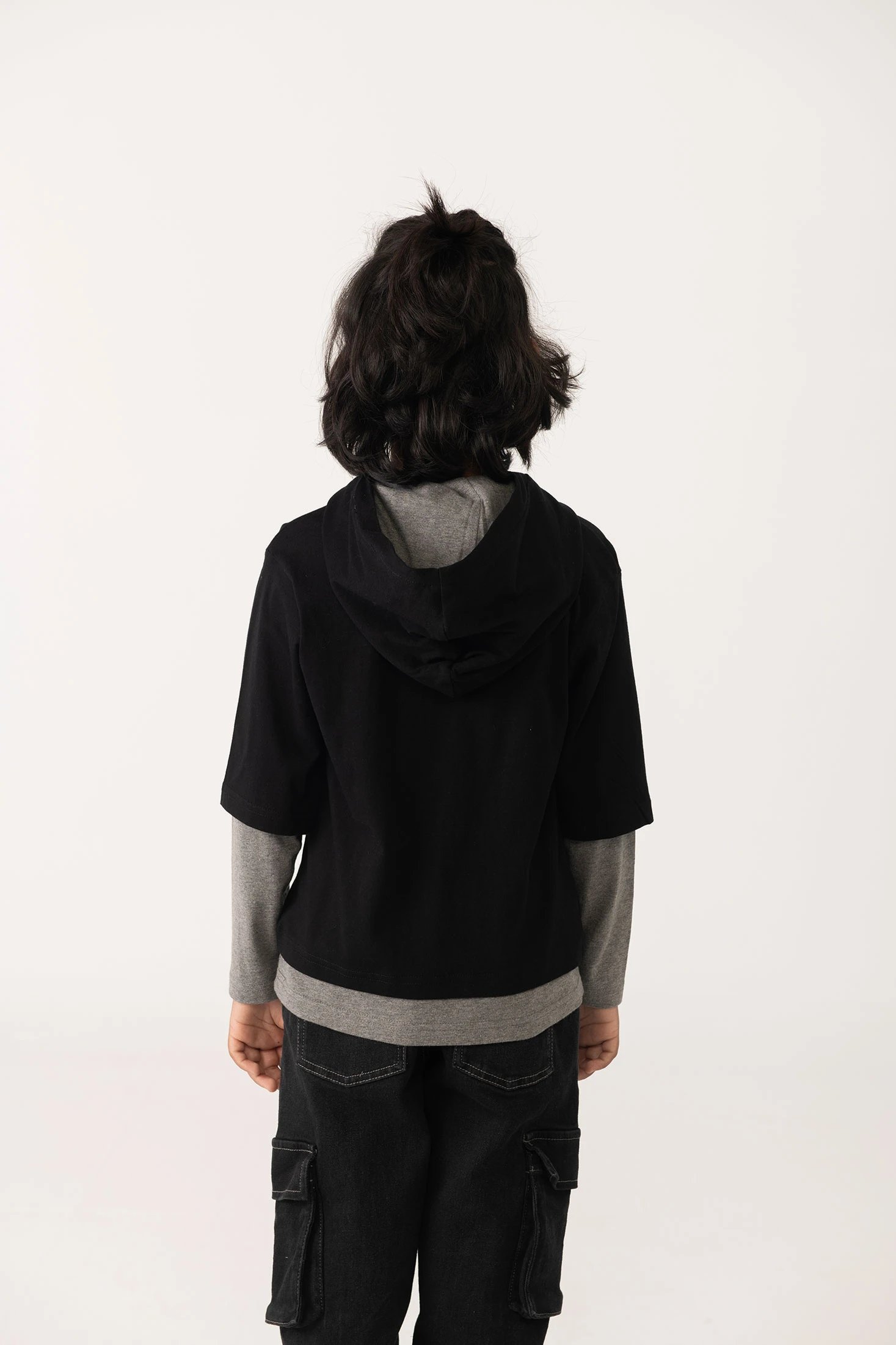 Boy´s black cotton hoodie T-shirt