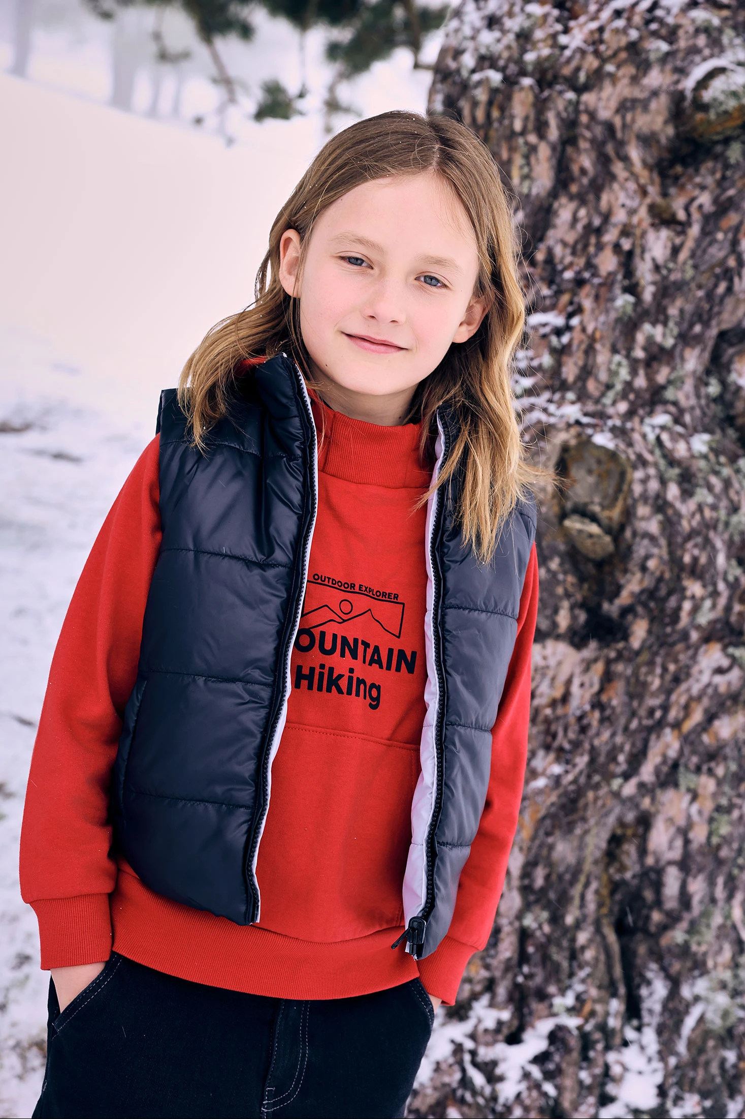 Hooded fleece sweatshirt for boys, perfect for the autumn and winter seasons. The burgundy colour and "Mountain Hiking" text design offer an adventurous and modern style. The hood and functional front pocket provide warmth and practicality on cold days. Made from soft fleece fabric, it ensures all-day comfort. Available in sizes ranging from 2 to 14 years, this sweatshirt is ideal to pair with jeans or sports trousers, adding a cosy and stylish touch to the child's wardrobe.