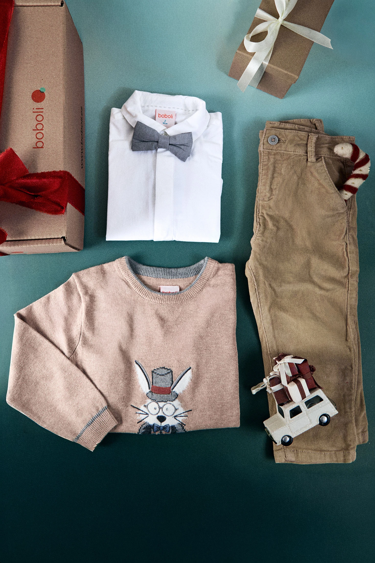 Beige knitted jumper for boys with animal design, ideal for the autumn and winter months. Made from a soft knitted fabric, it provides great comfort and warmth, perfectly adapting to colder days. The round neck and long sleeves ensure a comfortable fit, available in sizes from 12 months to 10 years. A versatile piece that easily pairs with jeans or trousers, adding a touch of cute and fun style to little ones' wardrobes.