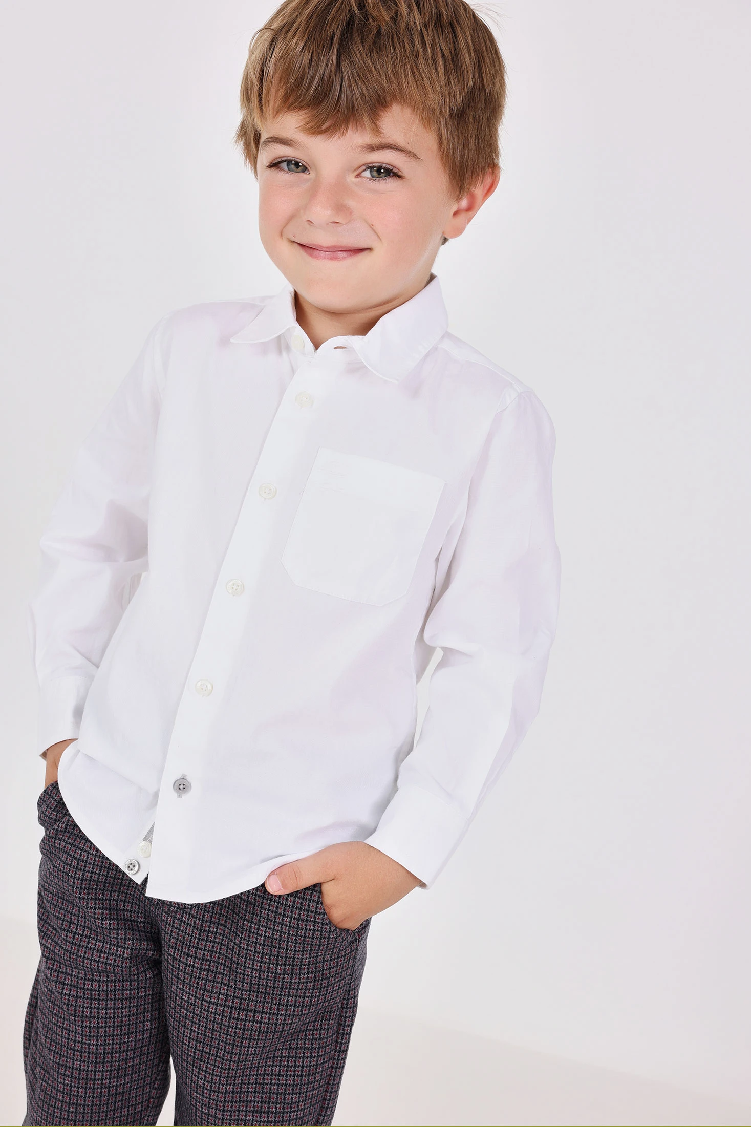 White oxford shirt for boys is an essential garment for any occasion, noted for its softness and comfort. Crafted from high-quality material, it features a classic shirt collar design and long sleeves, perfect for formal events and family gatherings. Available for up to 10 years. It is an ideal choice to pair with trousers for an adorable and sophisticated look. Its neutral colour facilitates its integration into your child's daily wardrobe, ensuring an impeccable and elegant style with every wear.