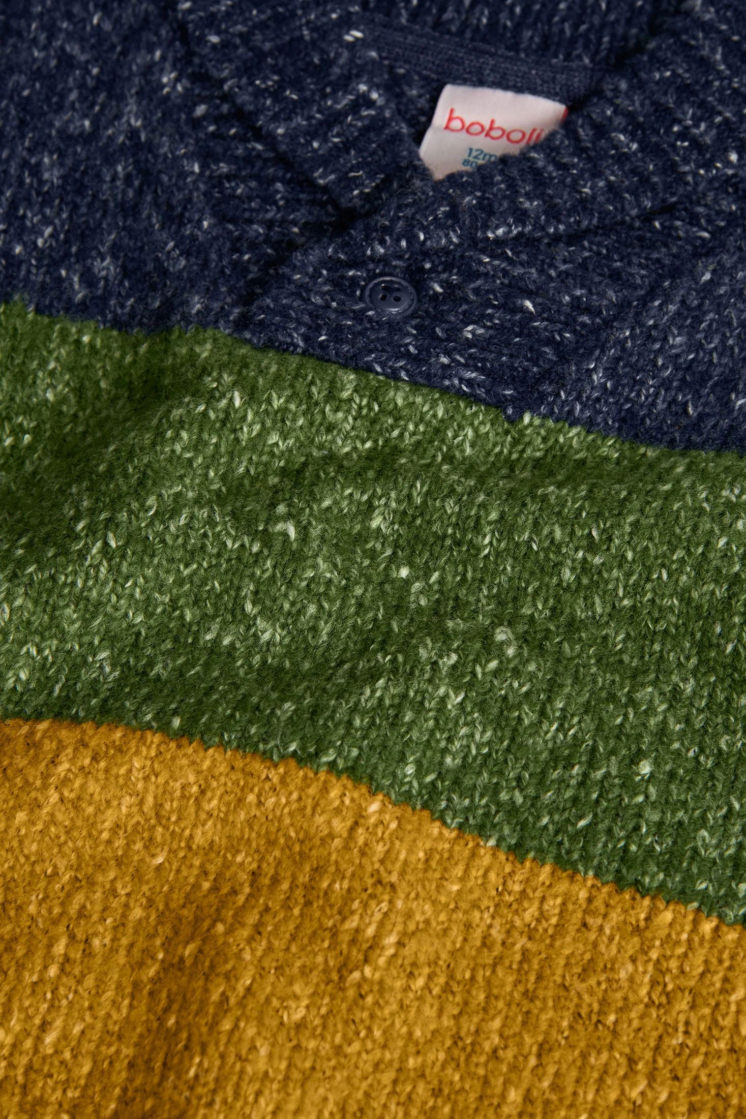 Navy blue knitted jumper for boys, designed to provide warmth and comfort for the little ones during the cold autumn and winter seasons. Crafted from a soft and cosy fabric, it features a crossover collar with a decorative button that adds an elegant touch to the ensemble. Available in sizes from 12 months to 10 years, it is a versatile garment that perfectly pairs with jeans or casual trousers, making it an essential for any child's wardrobe.