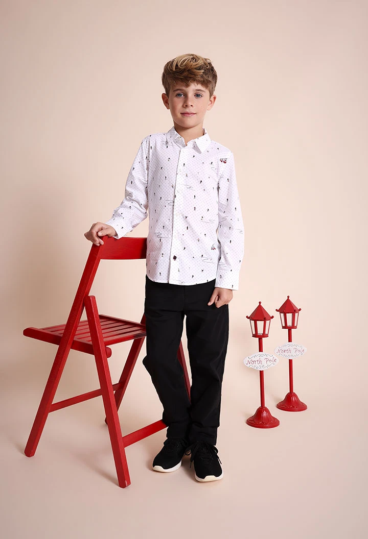 Black stretch satin trousers for boys, perfect for adding a touch of sophistication to a child's wardrobe. Crafted from high-quality stretch satin, they offer a comfortable fit that allows freedom of movement, ideal for both special events and everyday wear. Available in sizes from 2 to 14, they cater perfectly to your child's growth. Their versatile design allows them to be easily paired with smart shirts or jumpers, providing a solid foundation for multiple looks.