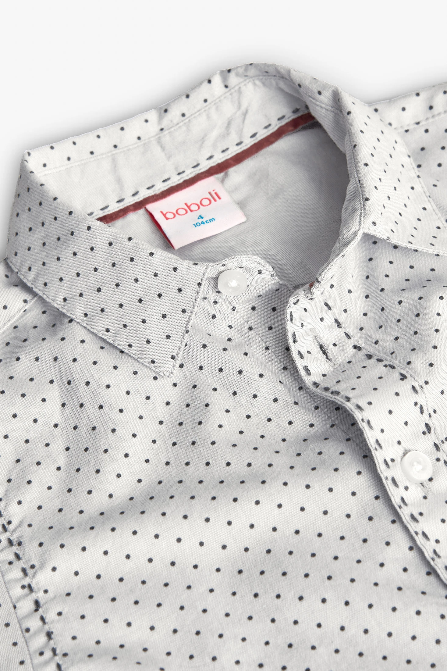 Oxford shirt for boys, adorned with sophisticated blue polka dots on a white background, ideal for special occasions and formal events. The soft material ensures all-day comfort, while the classic design, featuring a traditional collar and button closure, provides an elegant style. Available in sizes from 2 to 14 years, it offers a wide age range to accommodate children's growth. Perfect for pairing with dark trousers or chinos, creating a modern and distinguished outfit for any celebration.