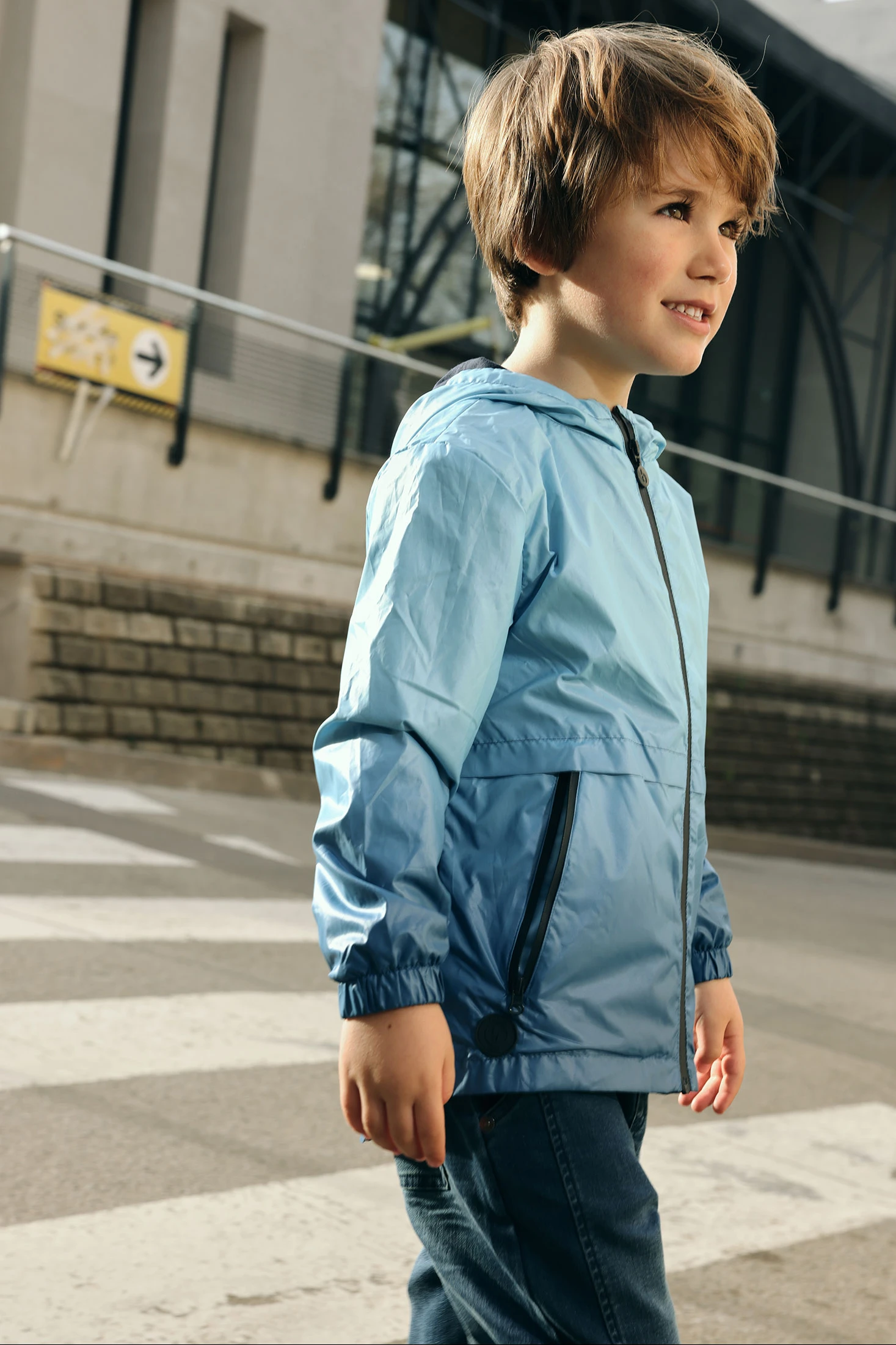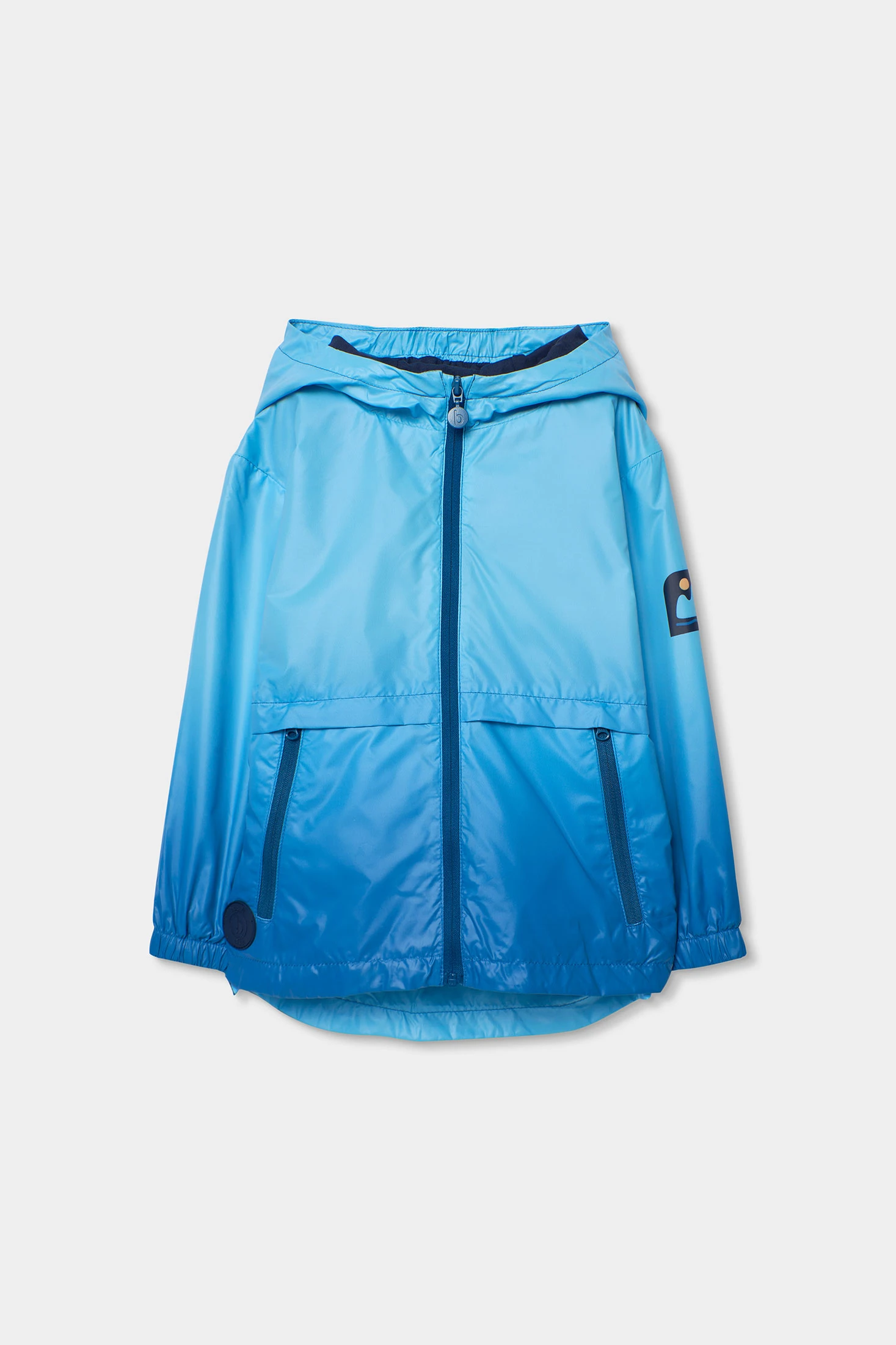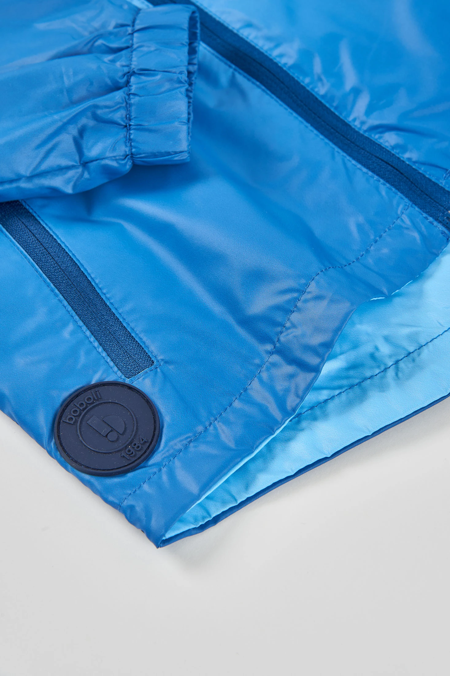 Blue technical fabric parka for boys, ideal for cool days. Its plain design in an attractive gradient blue shade is modern and functional, with an integrated hood for extra protection. The zip closure makes it easy to use, and the practical pockets add convenience. Available in sizes from 12 months to 10 years, it accommodates different growth stages. Details such as elasticated cuffs ensure a comfortable fit. Perfect for pairing with jeans or sports trousers, this parka is an excellent choice to keep the little ones warm and stylish.