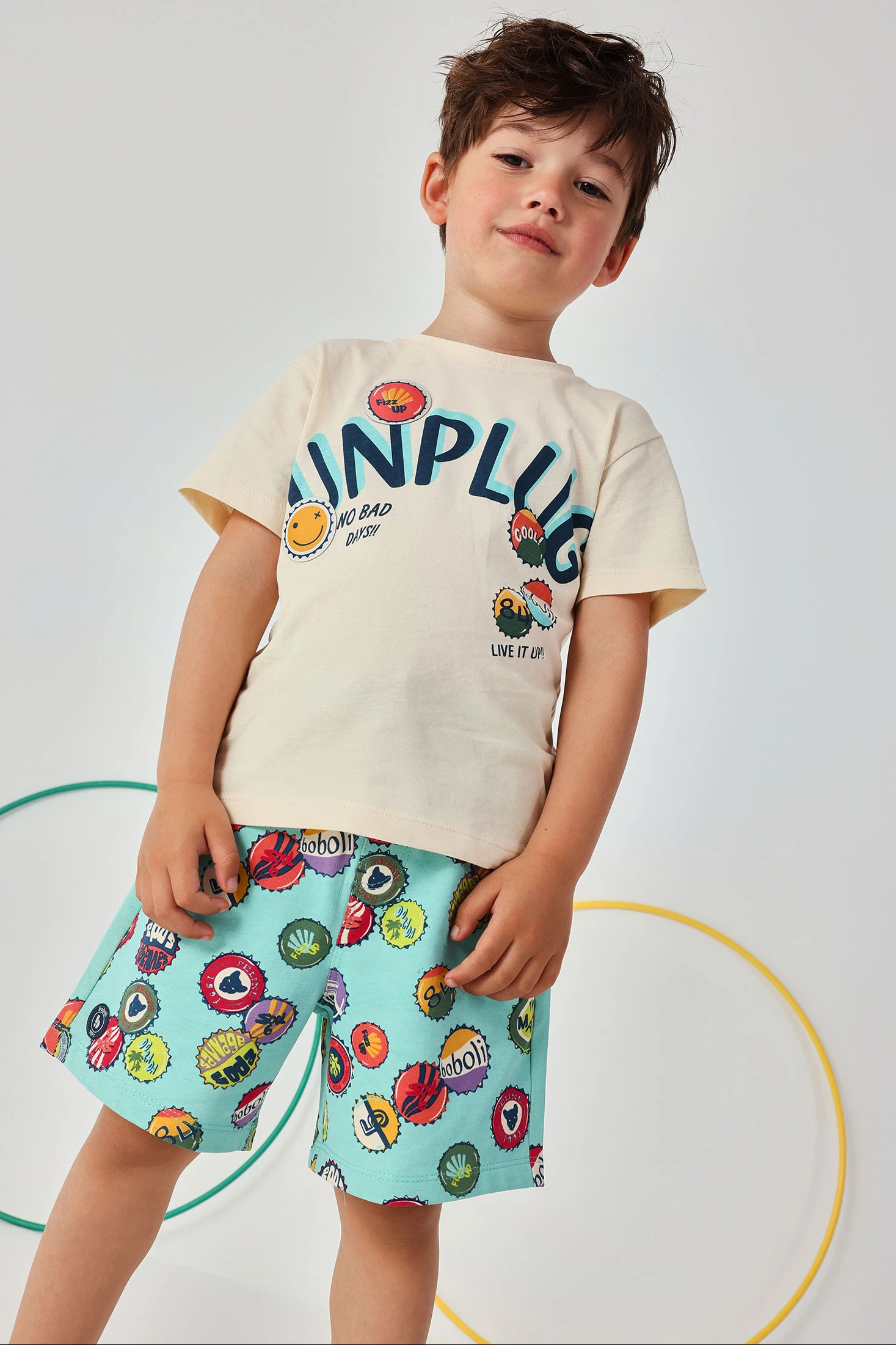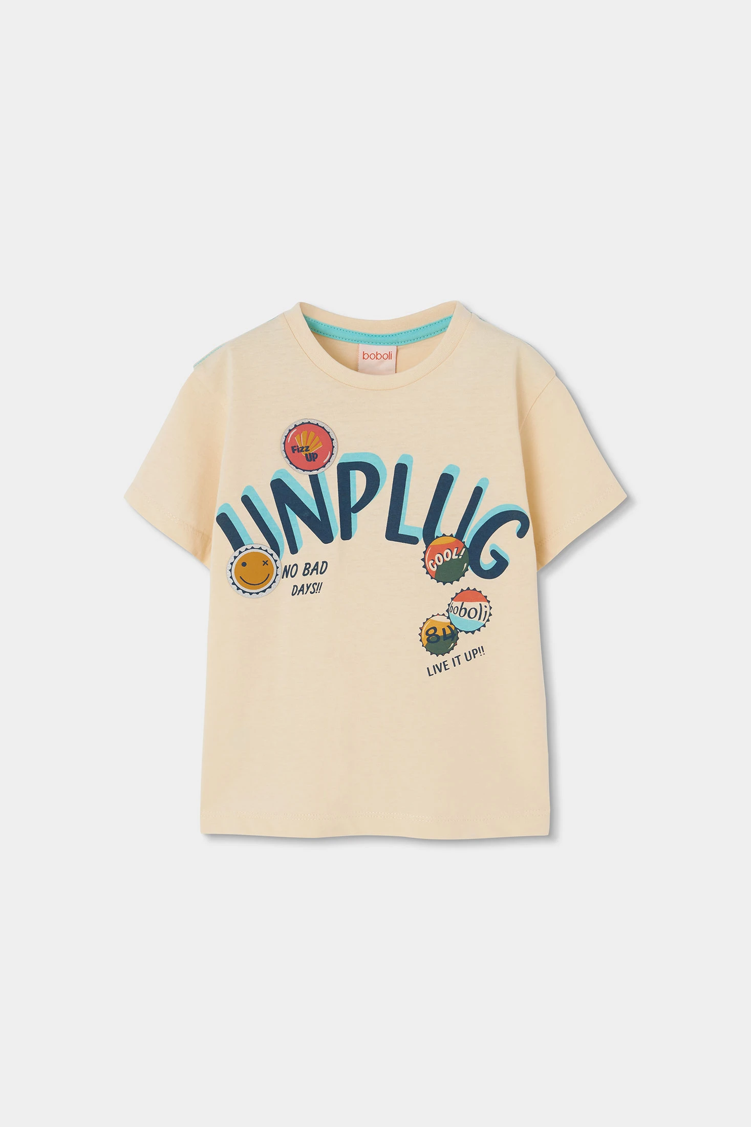 Kid?s T-shirt made from soft raw cotton, ideal for everyday wear. Its design features colourful drawings and words that add a fun touch. Sizes range from 12 months to 10 years, allowing it to adapt to the child?s growth. With a round neck and short sleeves, it?s perfect for warm seasons. Its versatility makes it easy to pair with jeans or shorts, offering comfort and casual style for any occasion.