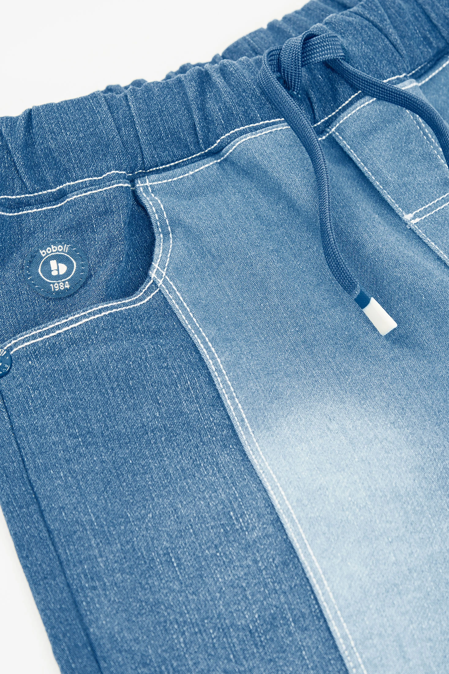 Blue denim shorts for boys, perfect for a casual and comfortable style. Crafted from a soft and durable fabric, they feature a classic design with an elastic waistband and adjustable drawstring for extra comfort. Their deep blue colour and functional pockets make them practical for everyday use. Available in sizes from 12 months to 10 years, they adapt to the child's growth. Ideal for pairing with cotton t-shirts and lightweight sweatshirts, these shorts offer versatility and style for any occasion.