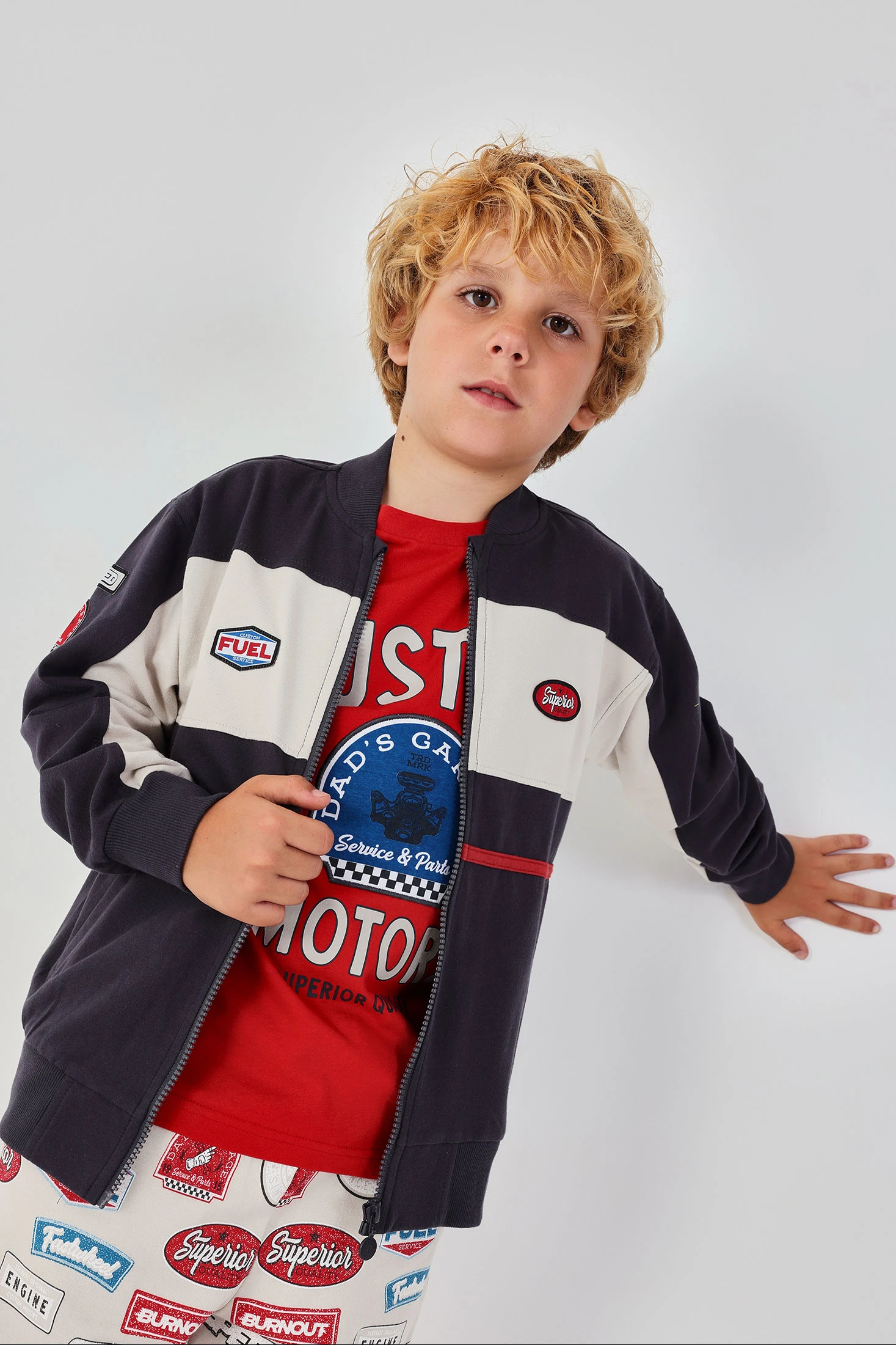 Grey fleece jacket for boys, ideal for autumn and winter. With a modern design and decorative details on the chest and sleeves, it combines functionality and style. Its composition ensures warmth and comfort. Available in sizes from 2 to 14 years, it?s perfect for keeping the little ones warm. The patches and zip fastening add a unique touch. Pairable with jeans and casual trousers, it?s a versatile garment for everyday wear.