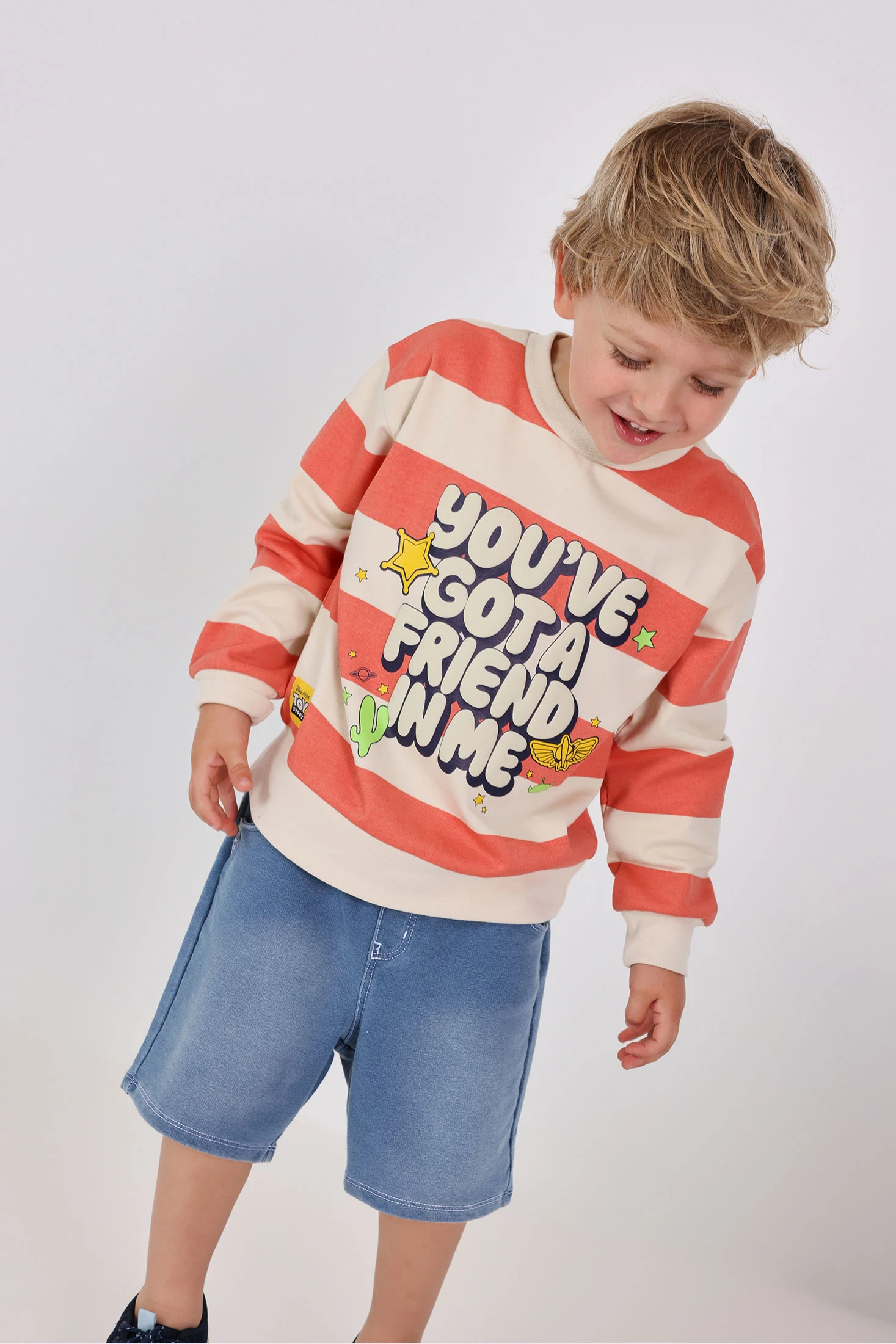 This girls‘ and boys’ fleece sweatshirt is a warm and comfy option for cooler days. It features a striped design in shades of red and ecru. Long sleeved and hoodless, it's ideal for wearing to school or for a stroll outdoors. The soft cotton fabric provides warmth without being lightweight. Available in sizes 12 months to 8 years, it is a stylish and functional garment.