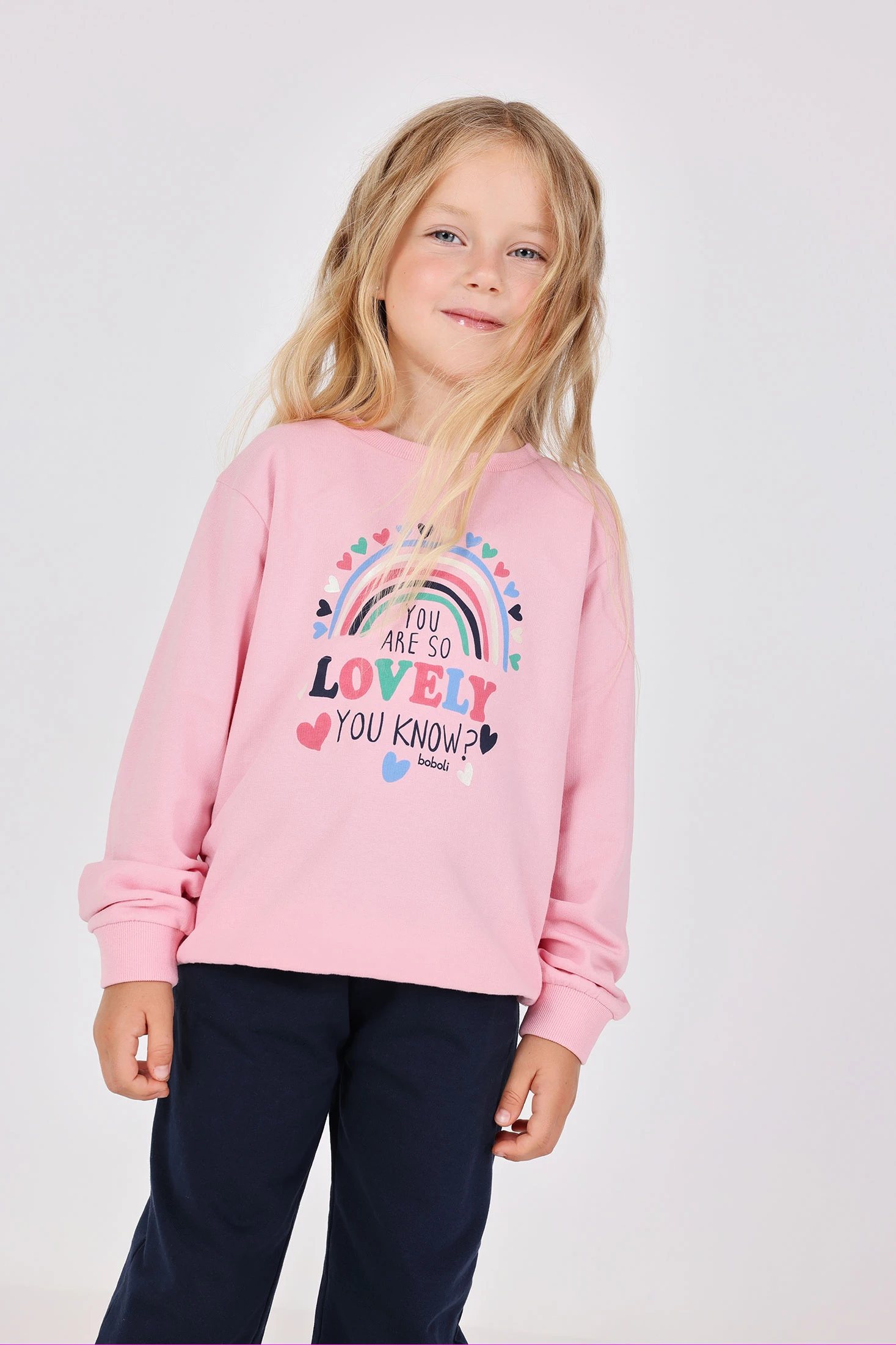 Fleece set for girls, in a charming pink colour with a rainbow print, perfect for the cooler seasons. Designed for sizes from 12 months to 10 years, it is crafted in a soft and warm fabric that ensures maximum comfort. Its cheerful and colourful design makes it ideal for any occasion, and it can be easily paired with neutral-toned T-shirts or jumpers to add a touch of style and fun to the children's wardrobe. Available in various sizes, it perfectly adapts to your little one's growth, ensuring a comfortable and cosy fit.