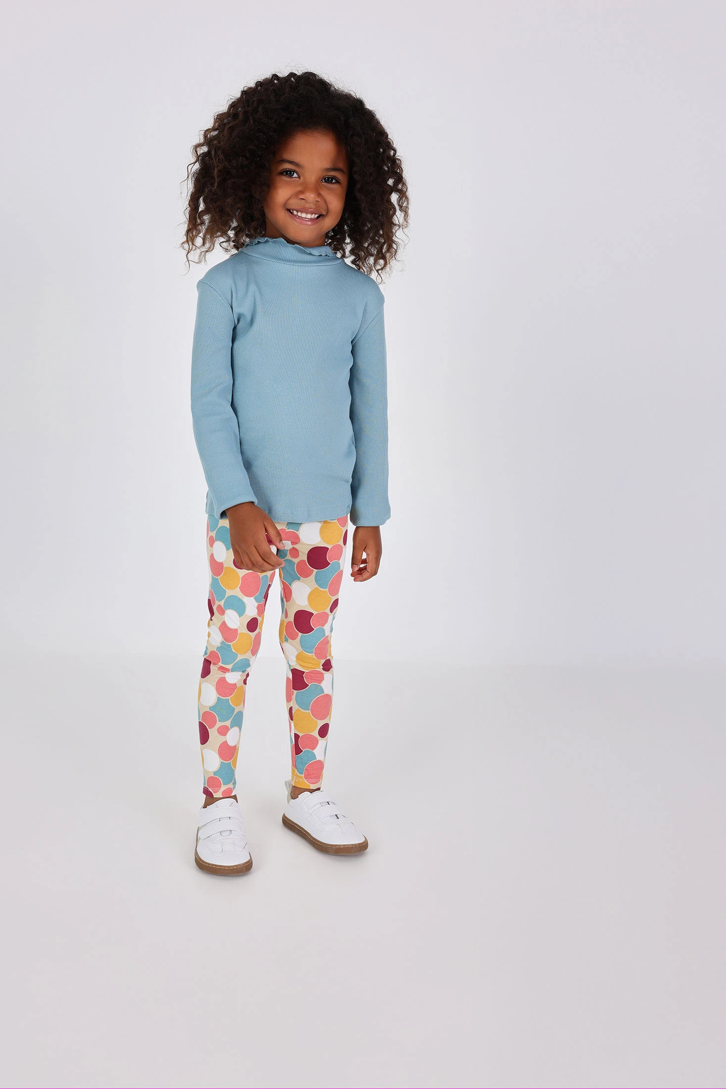 Knitted leggings for girls feature a charming circle pattern in shades of red, blue, yellow, and white. Made from a stretchy material that provides comfort and freedom of movement, they are ideal for all daily activities. Perfect for pairing with plain t-shirts or jumpers, they add a touch of colour and style to any outfit. Available in sizes from 12 months to 10 years, they are a versatile and vibrant choice suitable for all seasons.