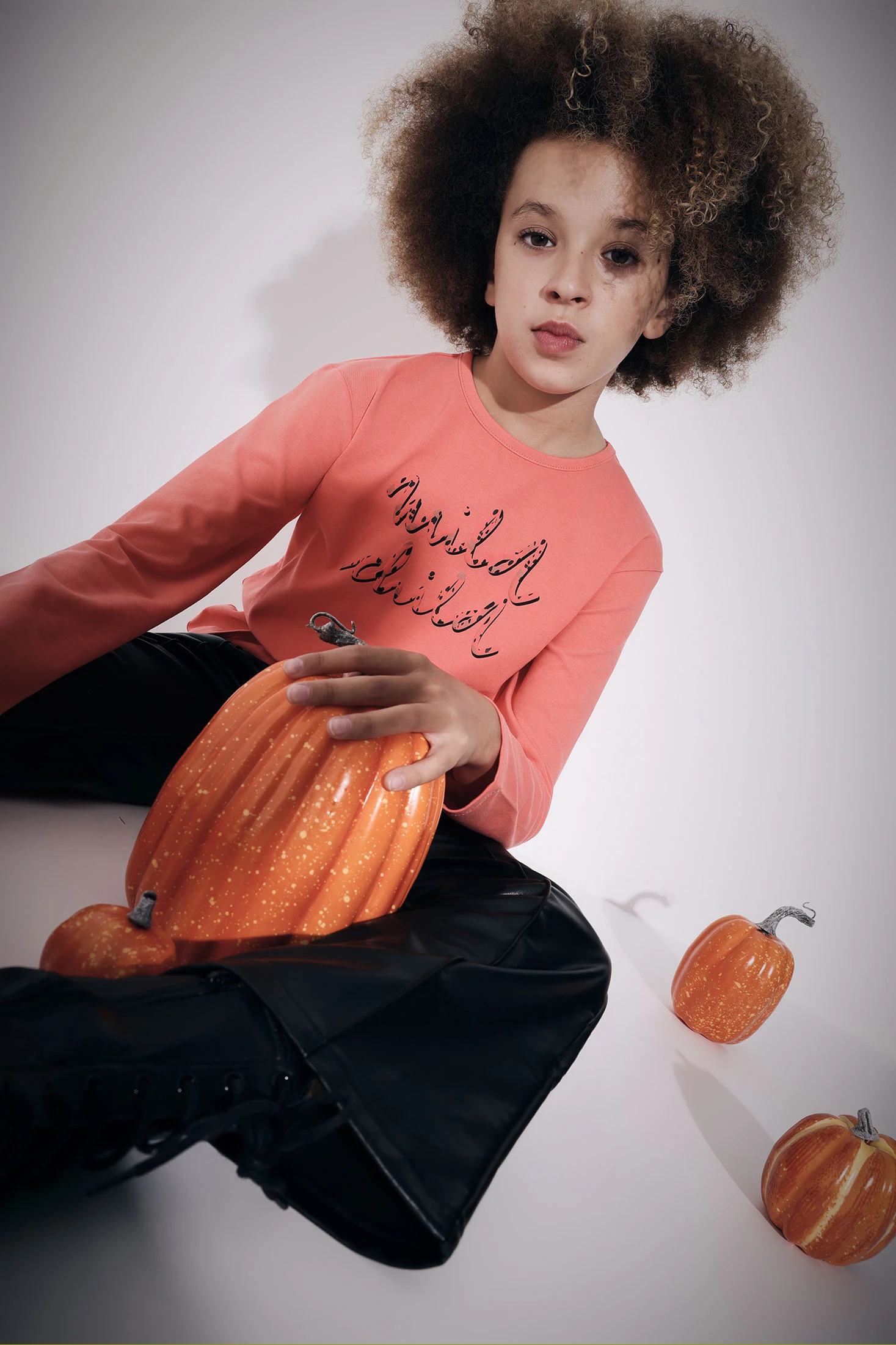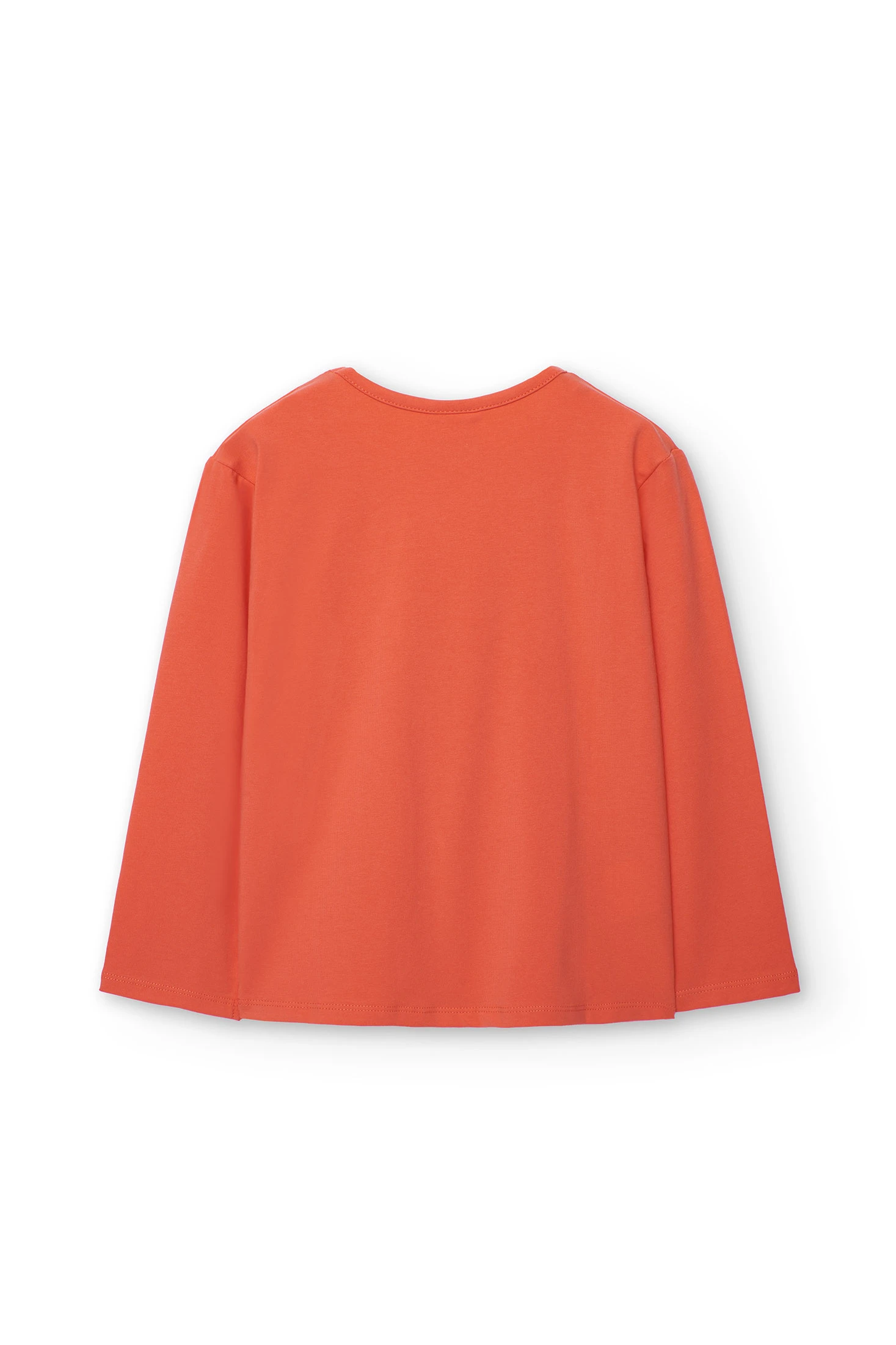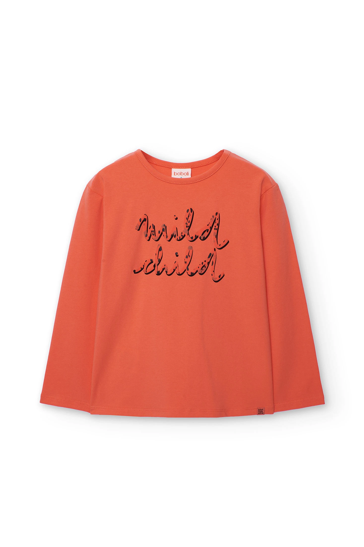 Long-sleeved T-shirt for girls, ideal for autumn and winter seasons, thanks to its construction in stretchy fabric that offers comfort and warmth. In salmon colour, it features printed letters, adding a distinctive touch. Its round neckline design ensures a classic and versatile style. Available in sizes from 2 to 14 years, it is a garment that can be easily paired to achieve casual and modern looks. Adds style and functionality to a child's wardrobe.
