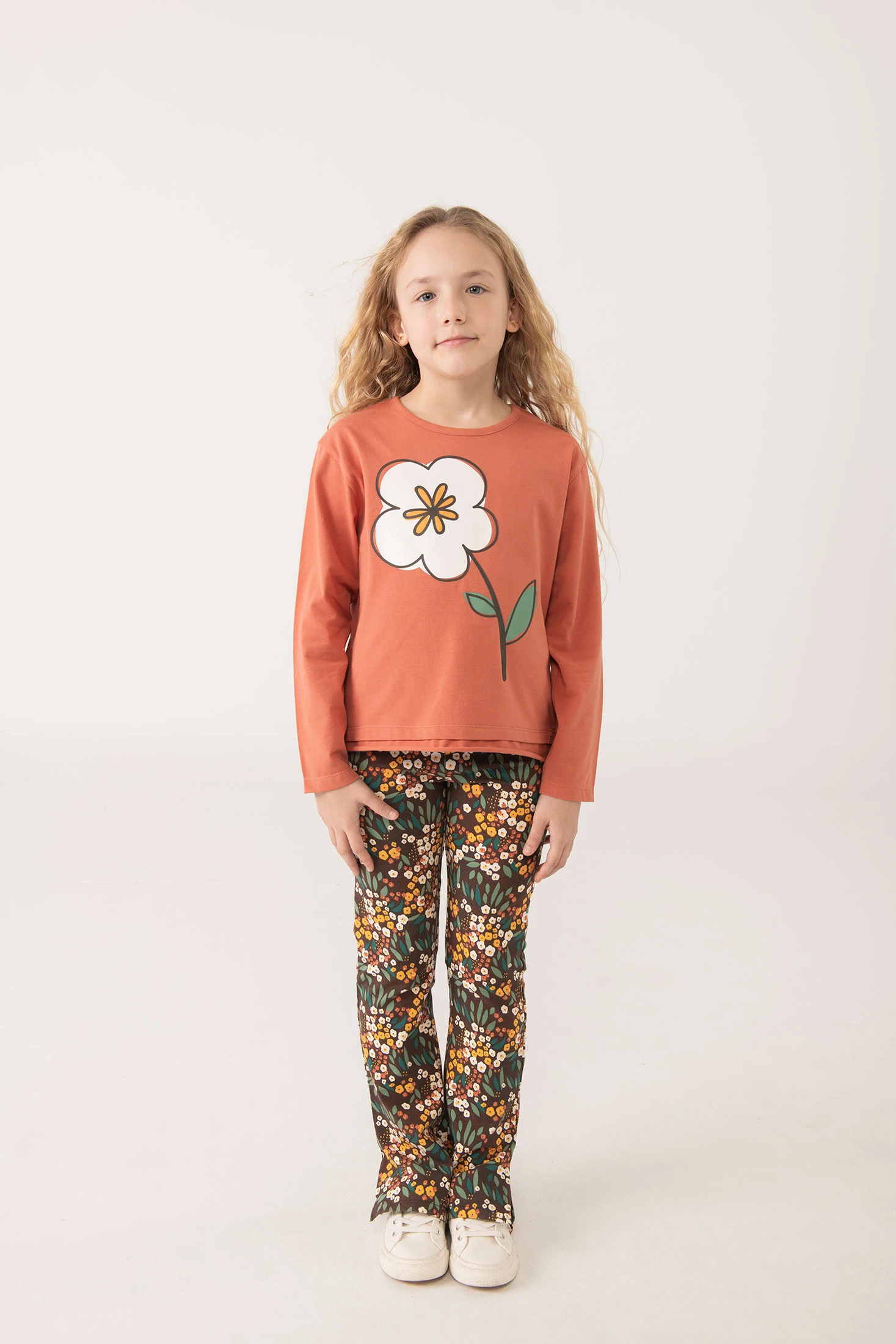 Girls' knitted leggings with a floral design are ideal for the autumn and winter season. Made from soft and warm fabric, they are perfect for daily wear in cold climates. Available in sizes 2 to 14, these versatile leggings can be paired with a variety of t-shirts and jumpers. Their comfortable fit ensures freedom of movement, allowing your girl to feel at ease and stylish on any occasion.
