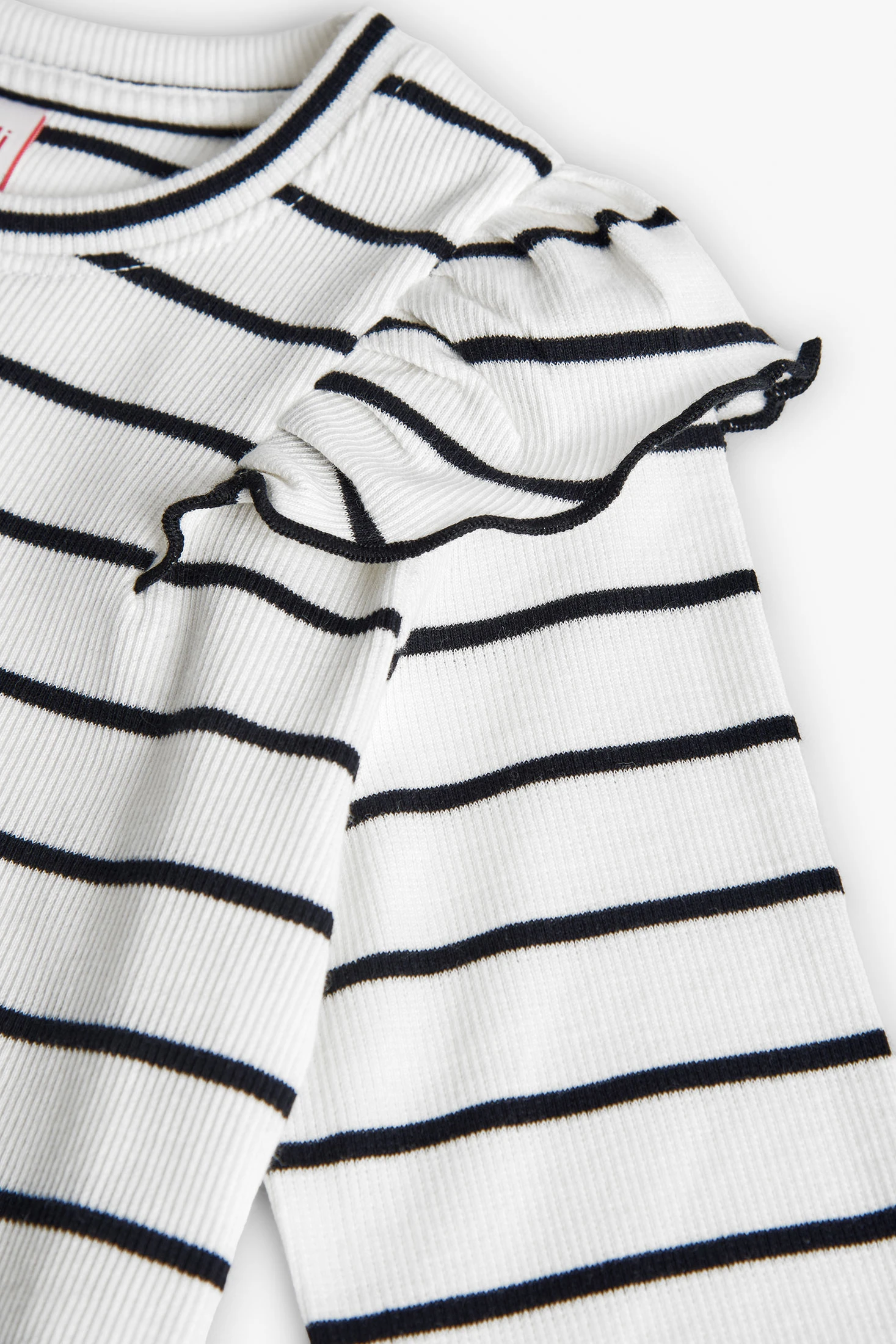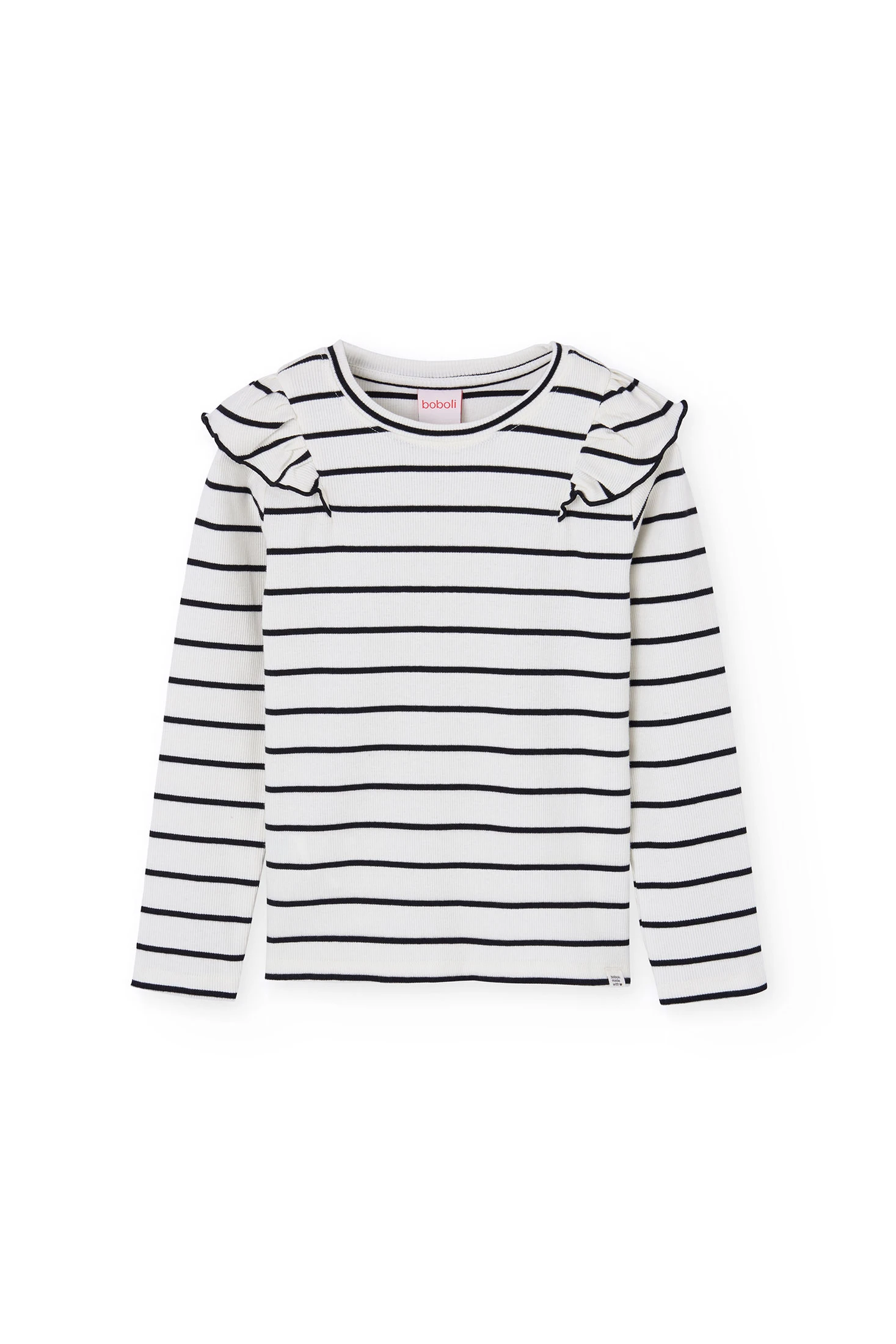 Knitted T-shirt for girls, ideal for offering style and comfort all year round. Crafted from soft and flexible cotton, it is perfect for any season, providing coolness in summer and an additional layer in winter. Available in a variety of sizes, this T-shirt ensures a perfect fit as your little one grows. Its versatile and timeless design easily pairs with skirts, trousers, or shorts, creating adorable and comfortable outfits for everyday wear or special occasions. An essential basic in the children's wardrobe that adapts to any style and occasion.