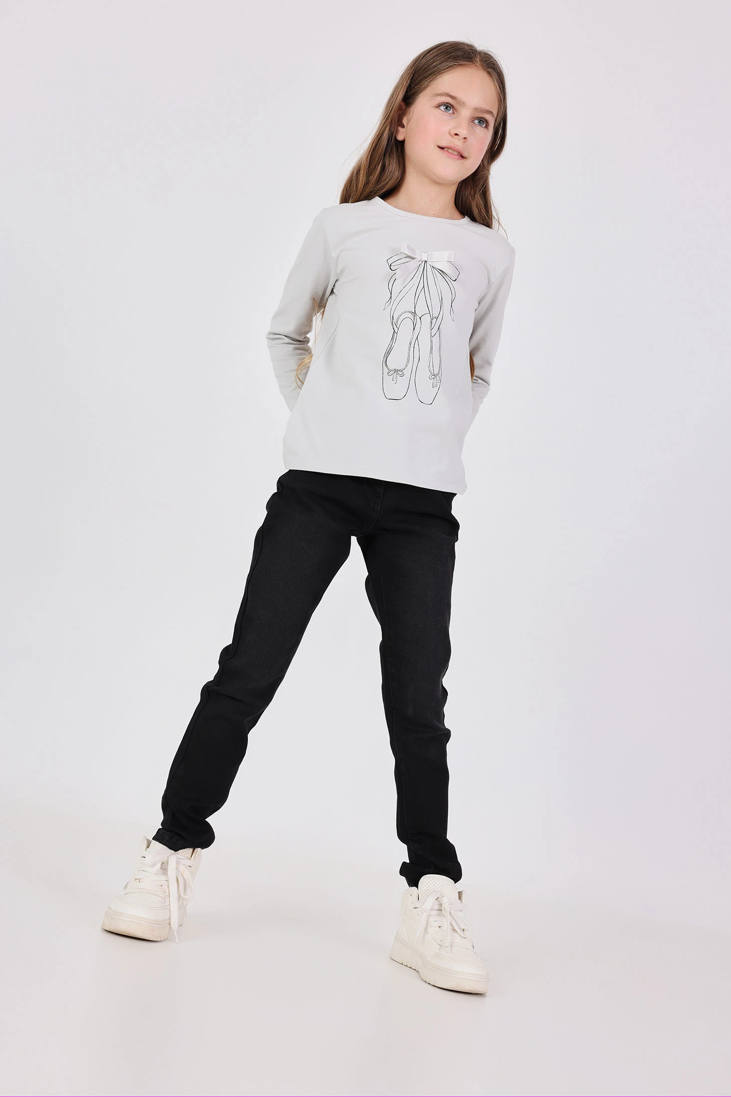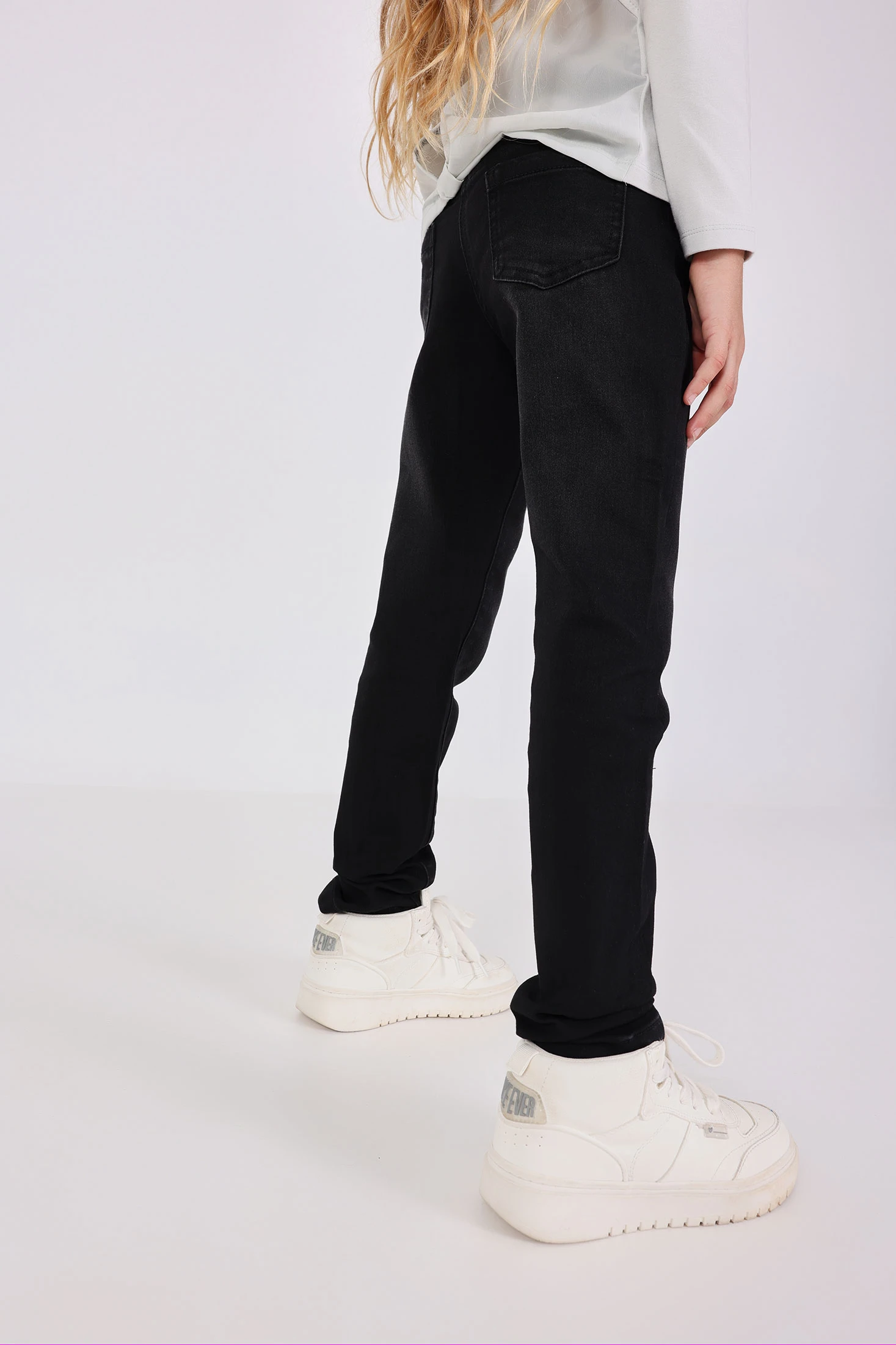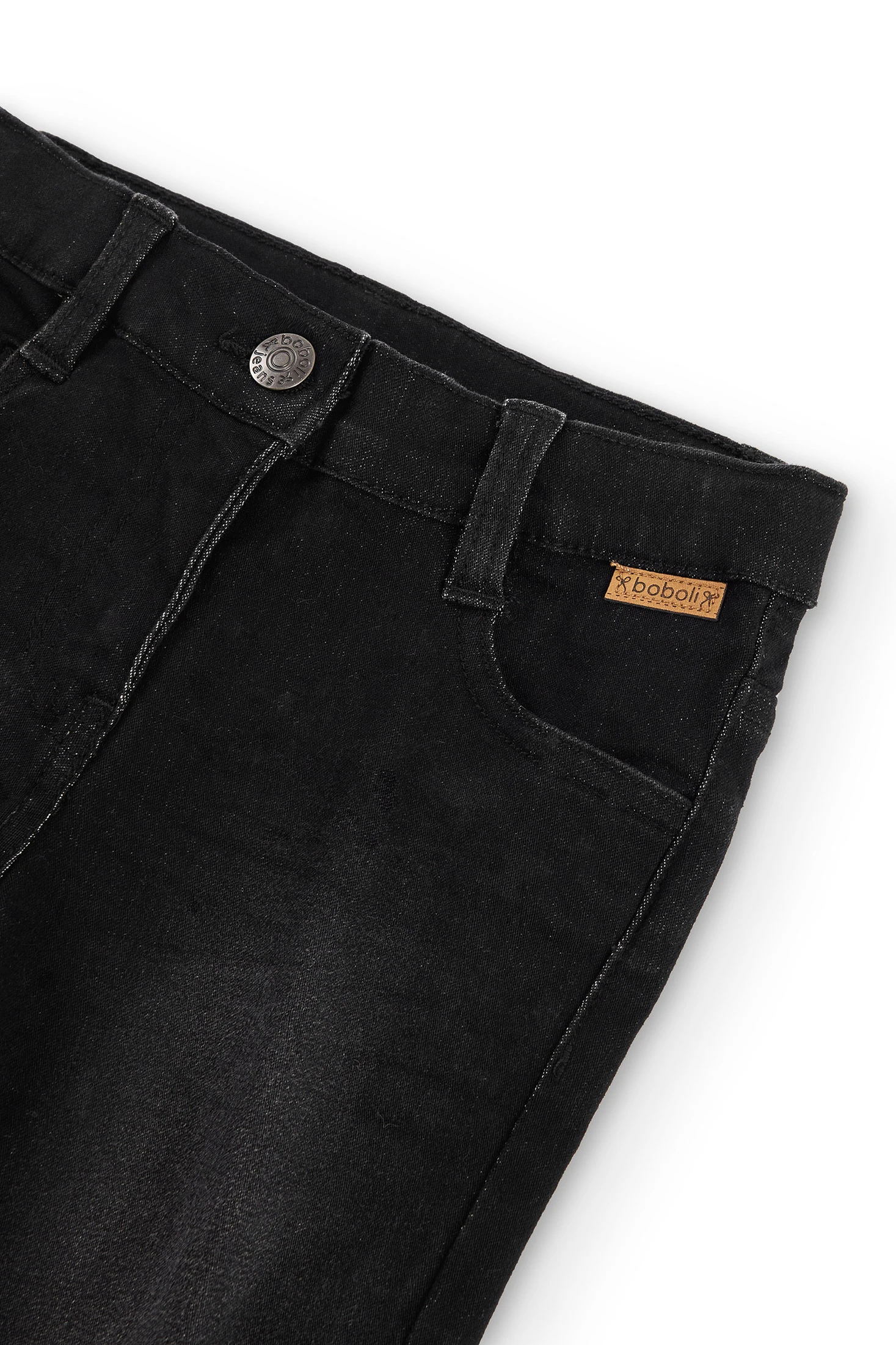 This is a girl's stretch denim trouser, perfect for in-between seasons. It comes in a solid, sleek black colour. The fabric is flat, providing a smooth and comfortable fit. Sizes range from 4 months to 16 years, catering to a wide age group. The trouser features a button closure, ensuring a secure fit. This versatile piece can be paired with various tops, making it a staple in your child's wardrobe. Its stretchy denim material allows for easy movement, making it ideal for active kids. Simple yet stylish, this trouser is a must-have for every girl's closet.