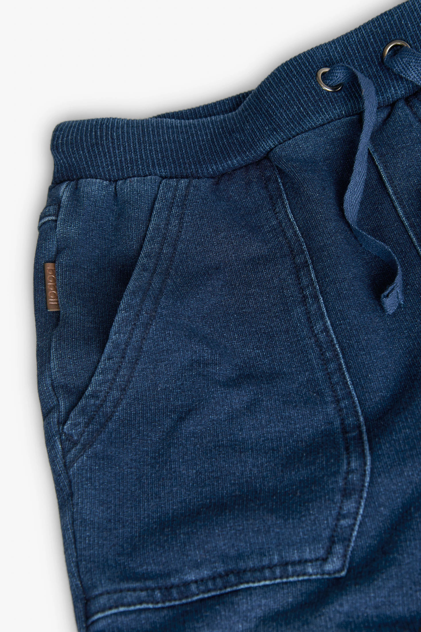 This is a denim fleece trouser for boys, available in sizes ranging from 4 months to 16 years. It's a plain design, made from knitted fabric, making it a perfect choice for in-between seasons. The trouser is in a striking shade of blue, adding a pop of colour to your child's wardrobe. It's a versatile piece that can be paired with various tops for different looks. The trouser is comfortable and durable, ensuring it can withstand the active lifestyle of children. It's a practical and stylish addition to any boy's clothing collection.